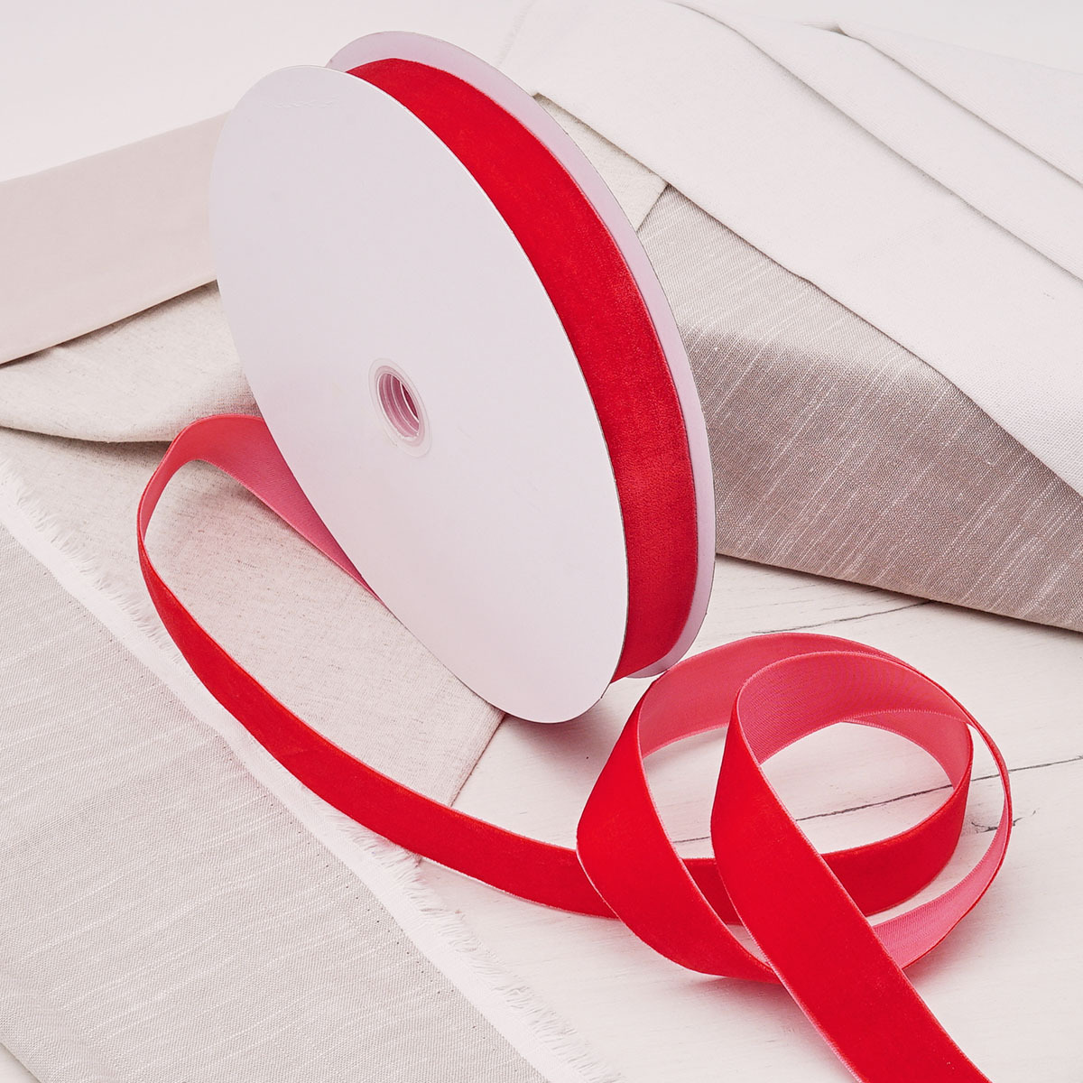 Лента бархатная (тесьма) 30.0 мм / 32.9±2 метров, 43 красный, VR-001