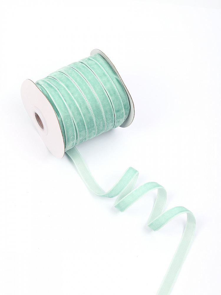Лента бархатная (тесьма) 10.0 мм / 22.86±1 метров, арт.10VR16 нейлон цв.мятный