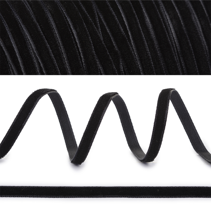 Бархатные ленты - это узкие полоски ткани, закрепленные по продольным краям тонкой кромкой. Бархатные ленты широко используют при производстве одежды, аксессуаров, бижутерии, с такой лентой они приобретает неповторимый и роскошный вид. Отличительной особенностью нашей ленты является 100% нейлон в составе материала, который придает ей высокую мягкость и гладкость.