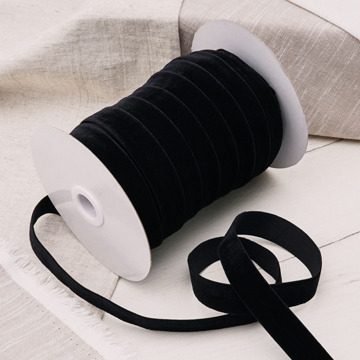 Лента бархатная (тесьма) эластичная 20.0 мм / 32.9±2 метров, 03 черный