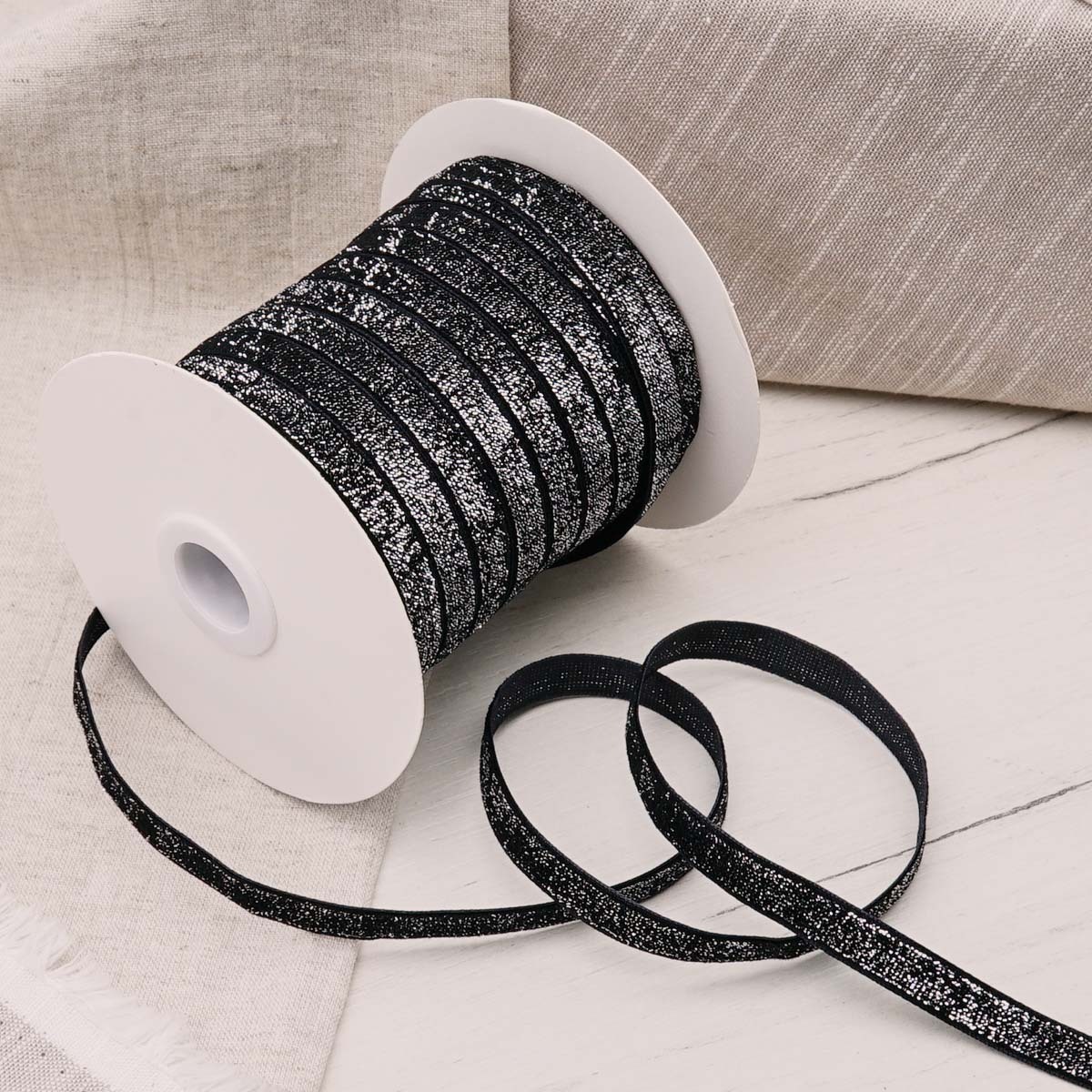 Лента бархатная (тесьма) с люрексом 10.0 мм / 32.9±2 метров, 03 черный