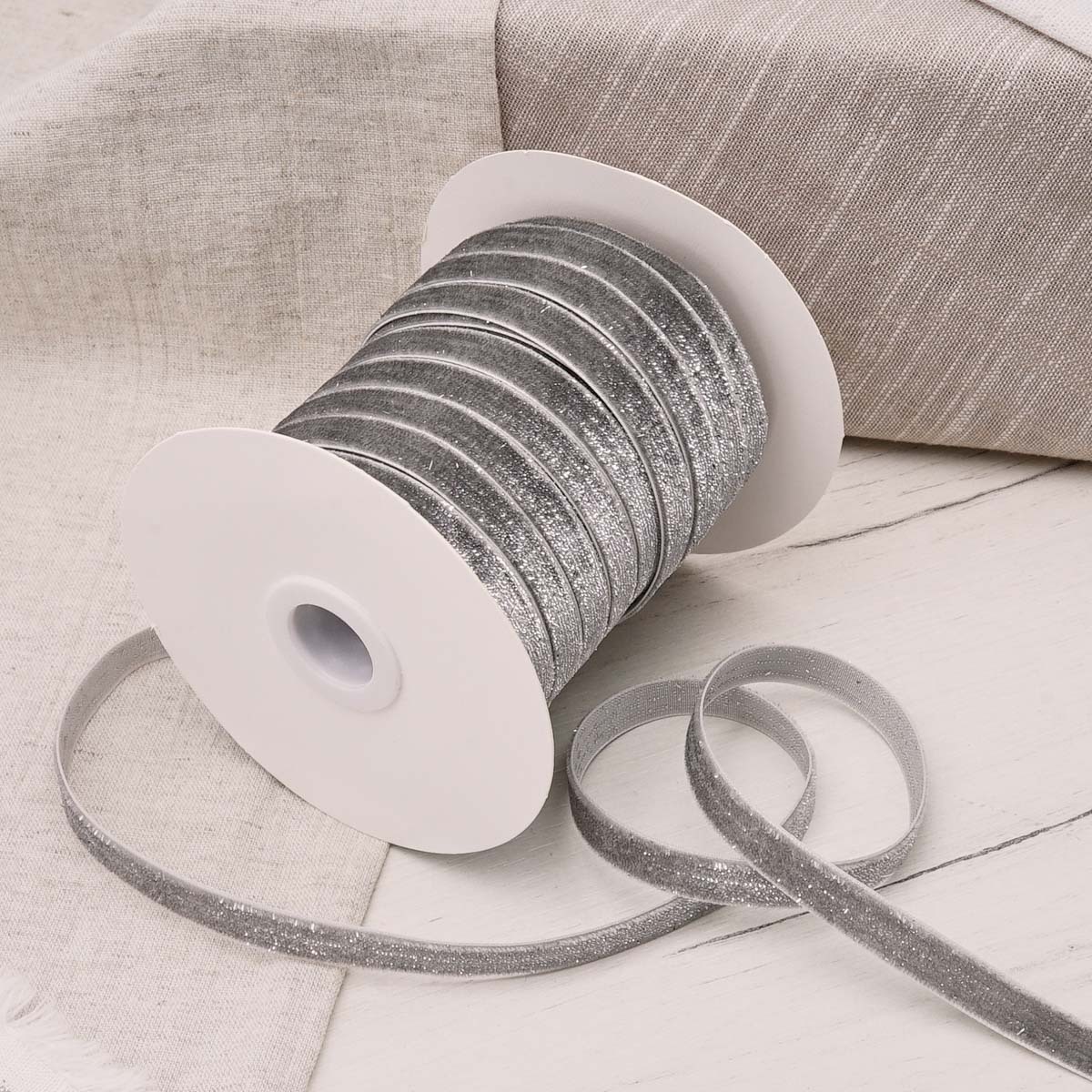 Лента бархатная (тесьма) с люрексом 10.0 мм / 32.9±2 метров, 182 серый