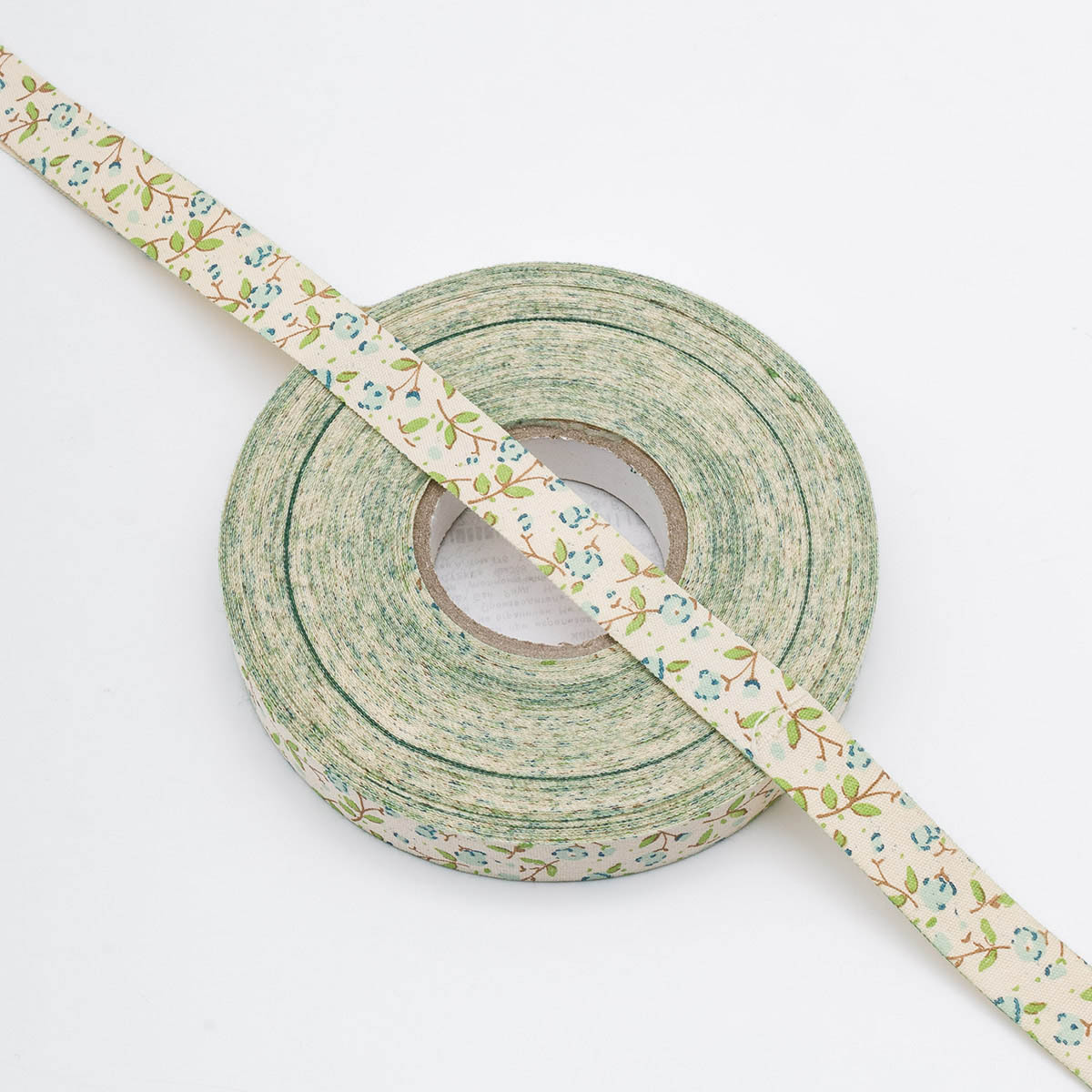Лента декоративная х/б Цветы 15.0 мм / 25±1 метров, бело-голубой, 3448