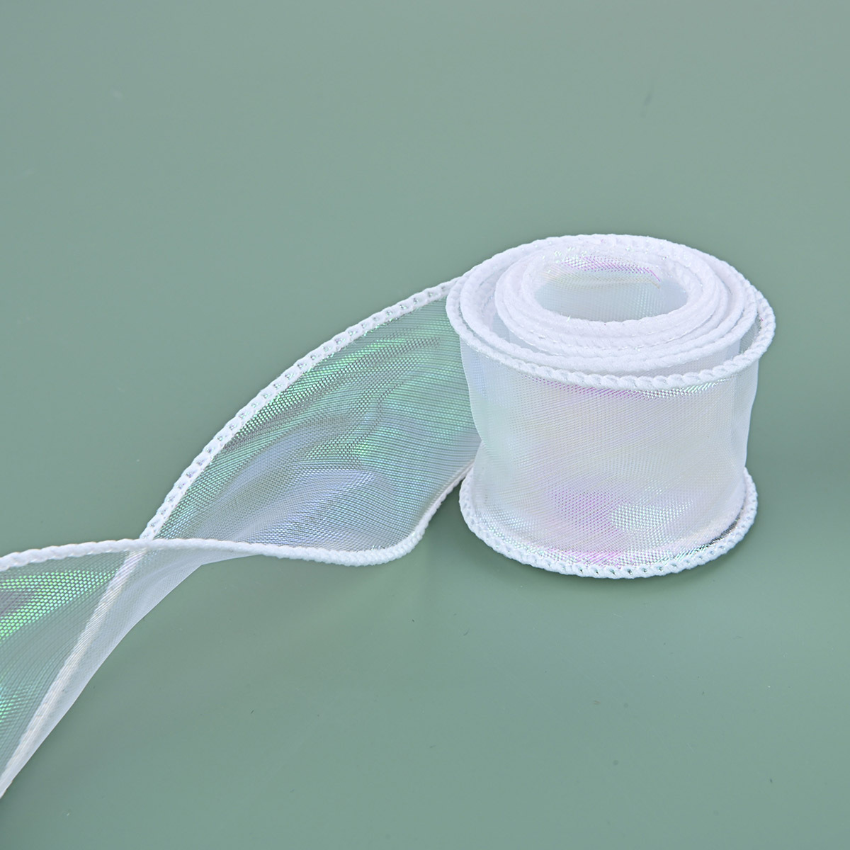 Лента декоративная с волнистым краем перламутр 38.0 мм / 18.29±1 метров, 100% органза, УЦЕНКА (04 белый перламутр), 6100-9043