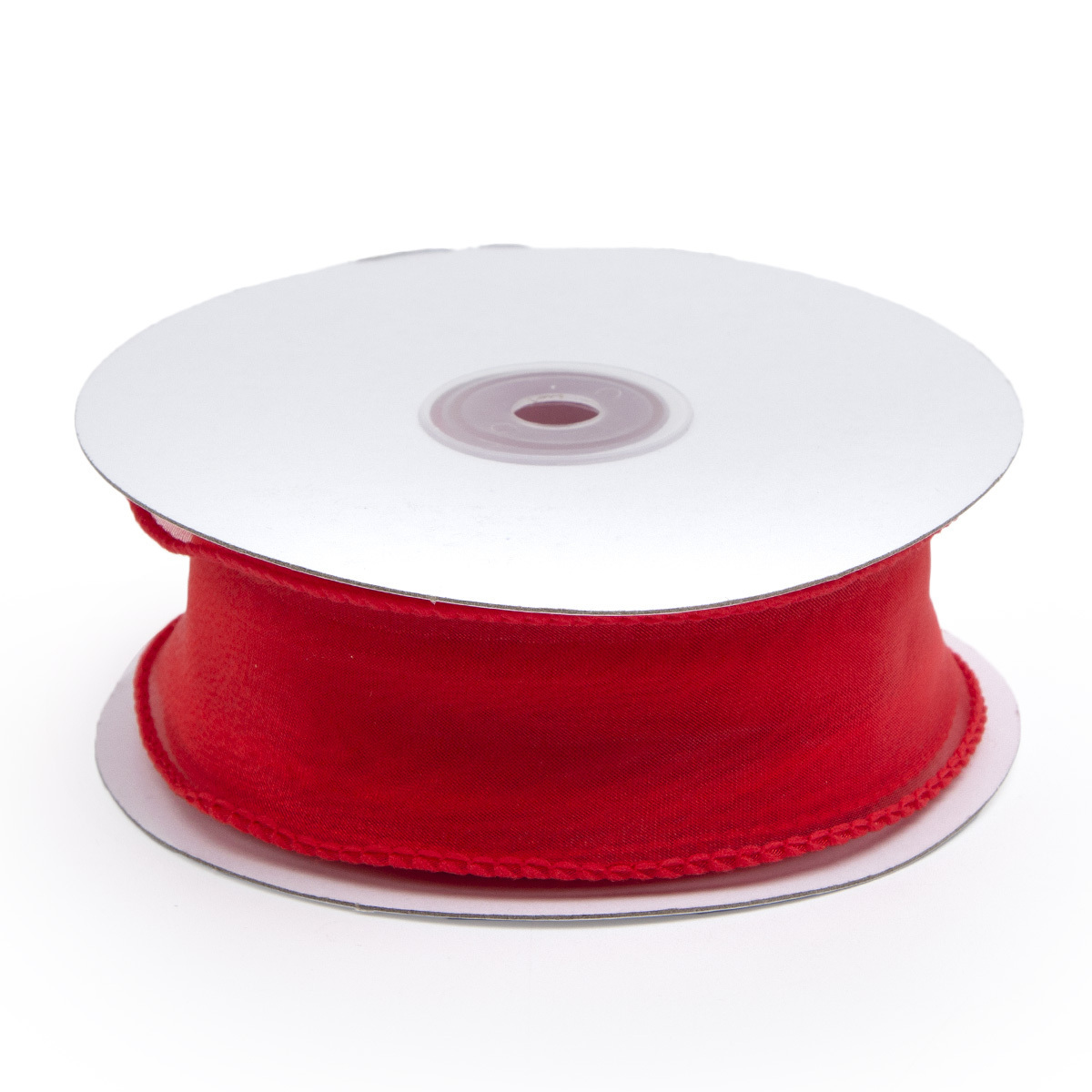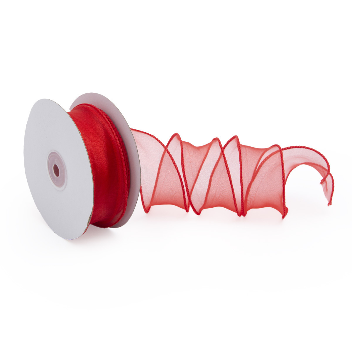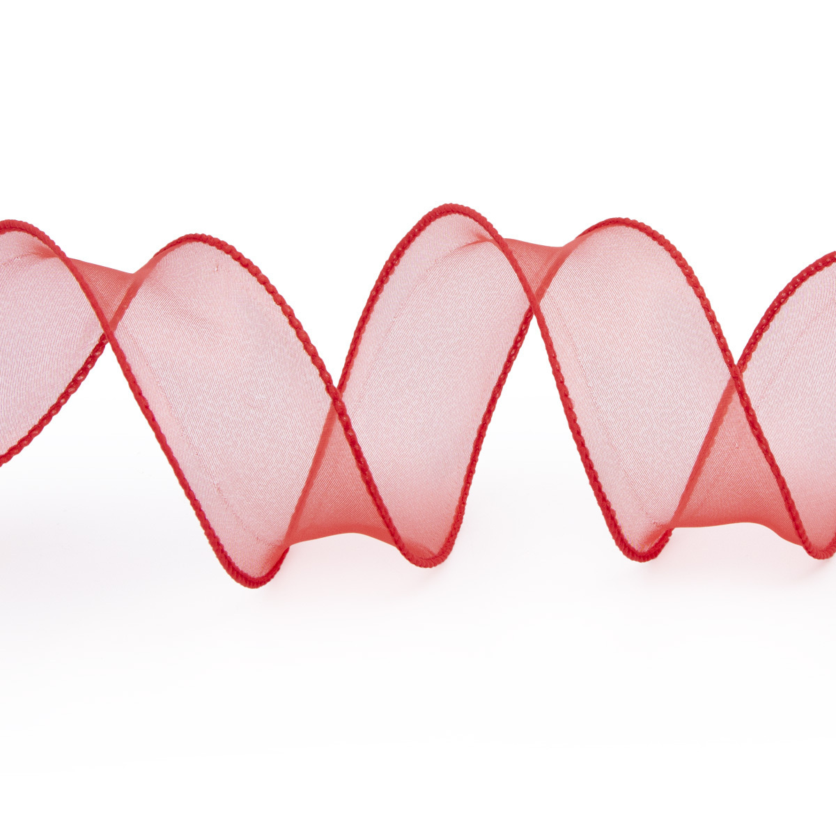 Лента декоративная с волнистым краем 38.0 мм / 18.29±1 метров, 100% органза, (01 красный)