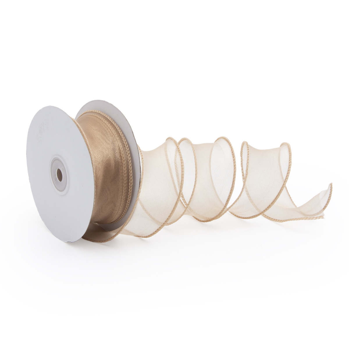 Лента декоративная с волнистым краем 38.0 мм / 18.29±1 метров, 100% органза, (32 золото)