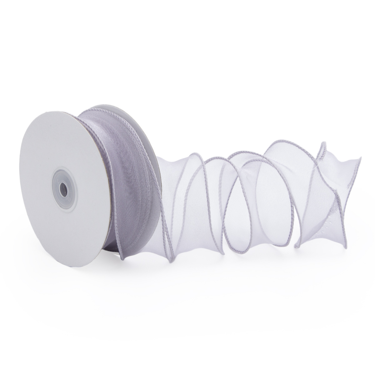 Лента декоративная с волнистым краем 38.0 мм / 18.29±1 метров, 100% органза, (светло-серый)