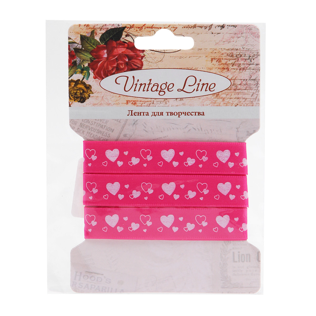 Лента декоративная Сердечки, атлас, 12 мм, 1 м (розовый)