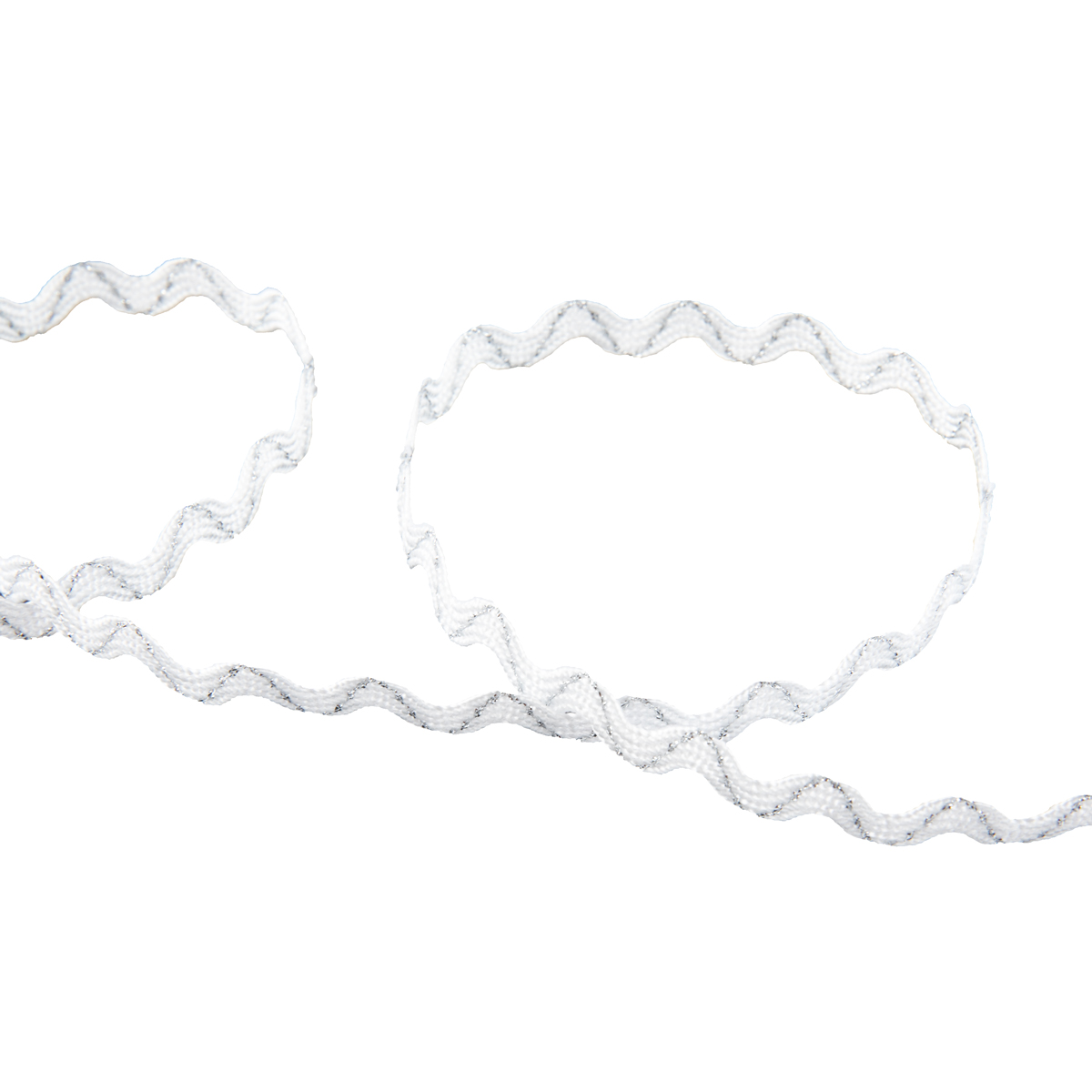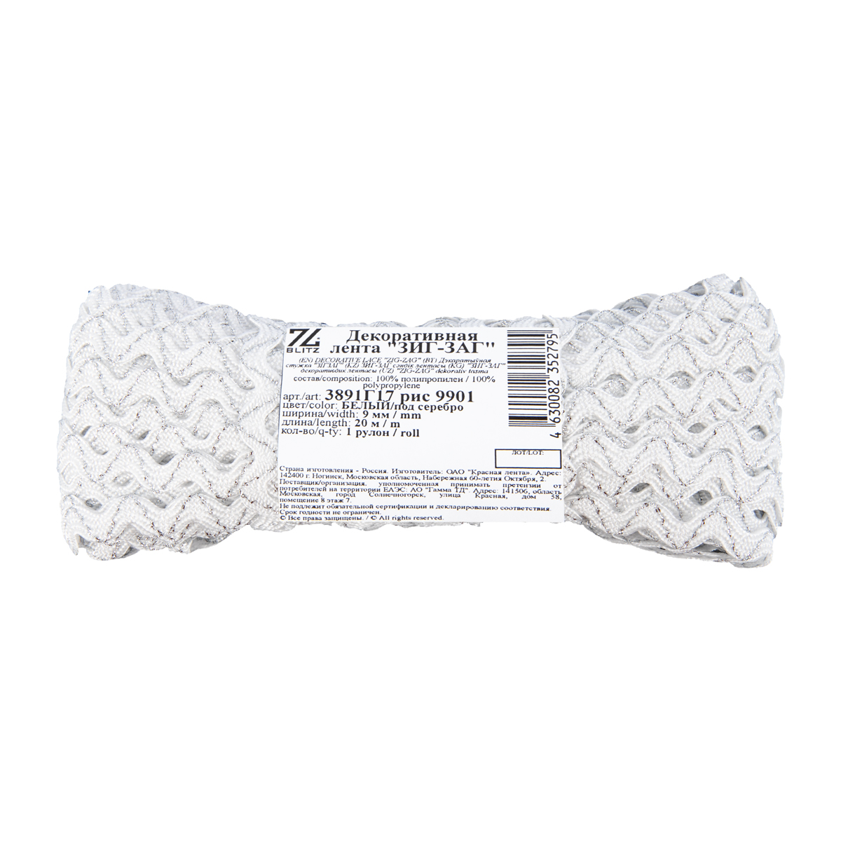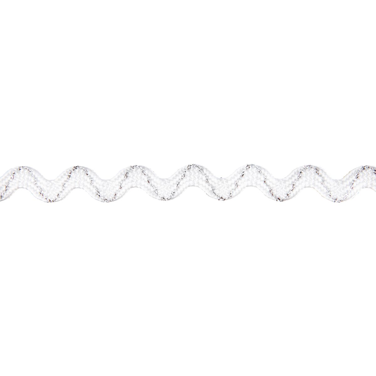Тесьма отделочная зигзаг 9 мм, / 20 метров, белый/под серебро, Blitz