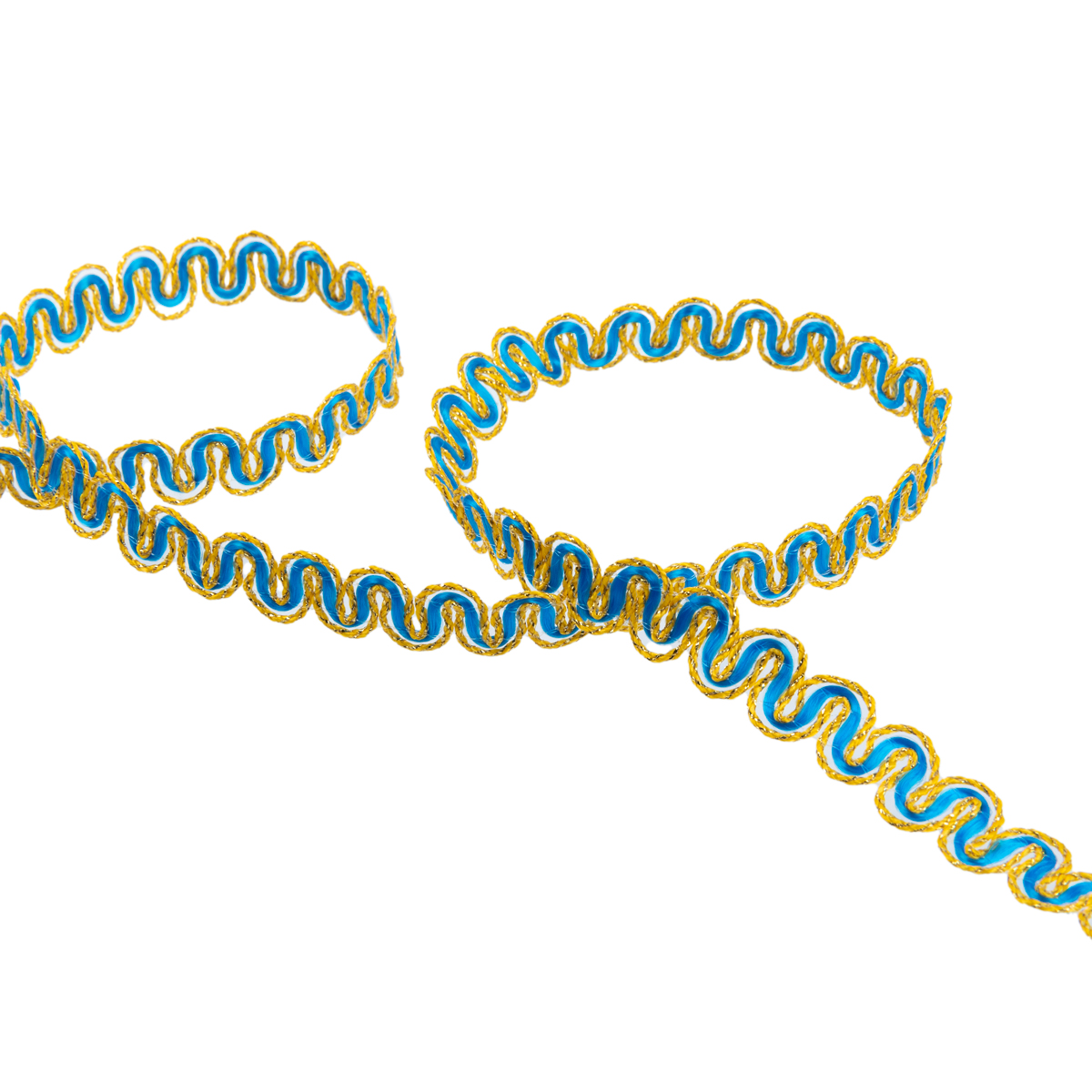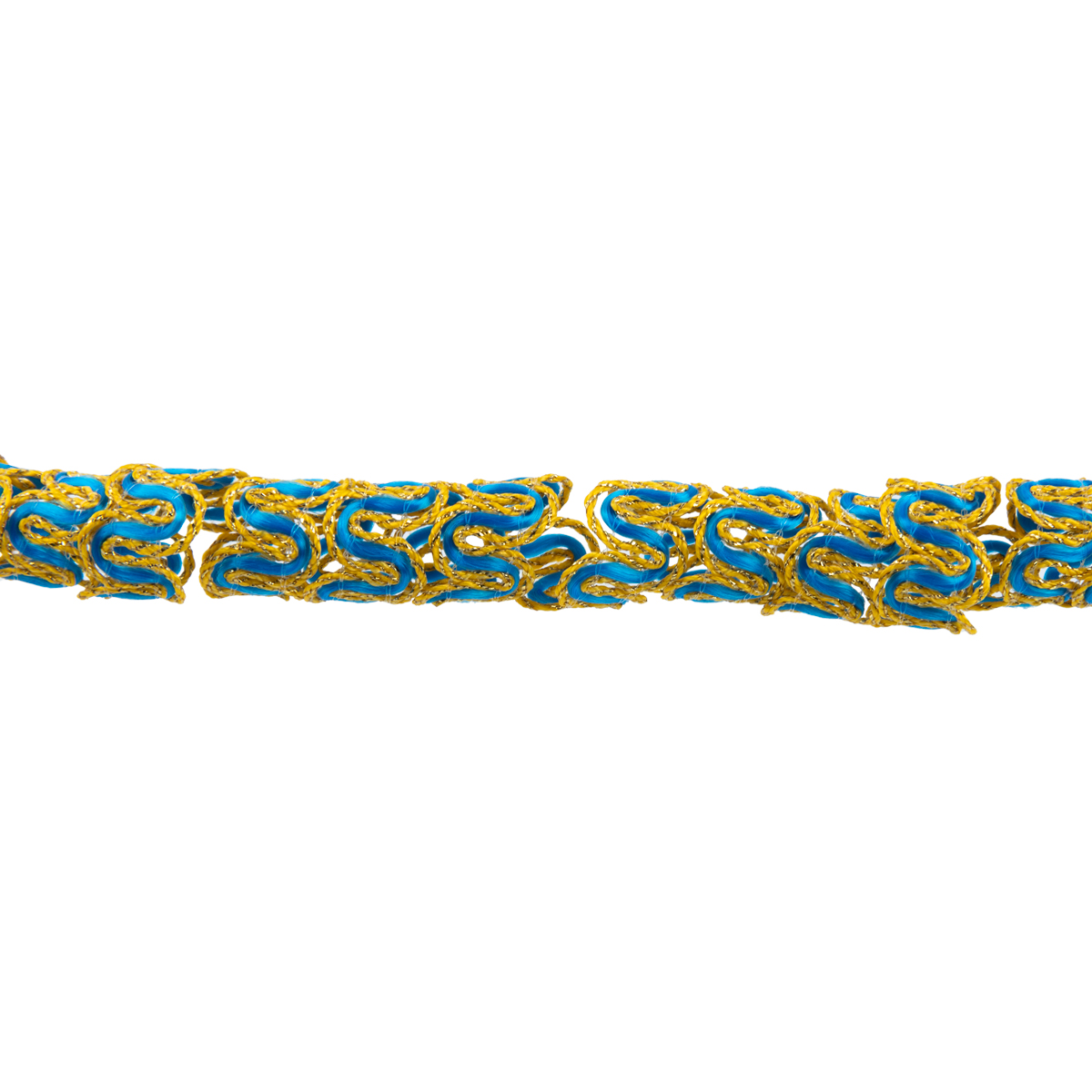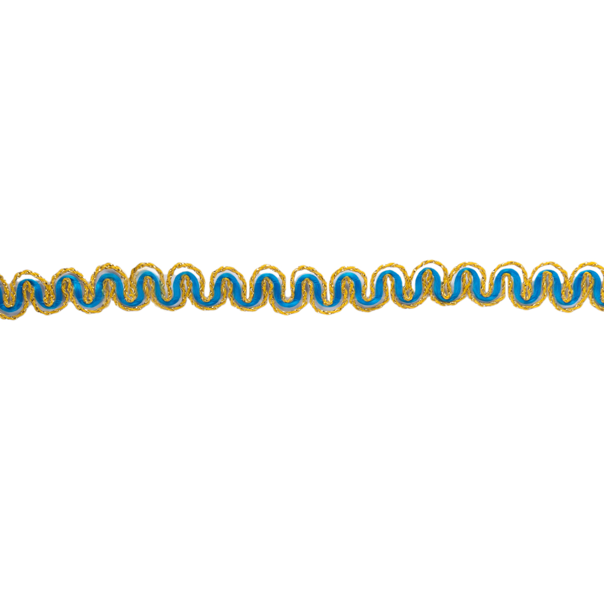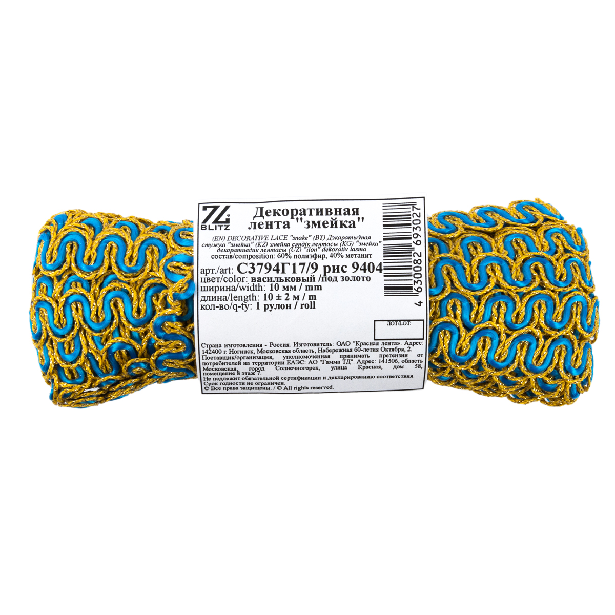 Тесьма декоративная 10 мм / 10 метров, метал. рис. 8657, васильковый /под золото, Blitz