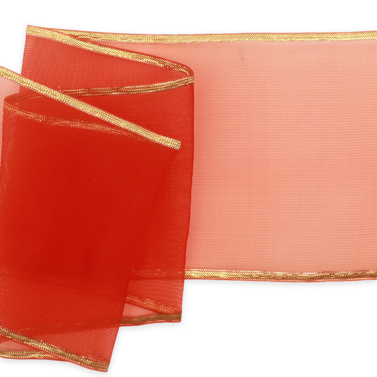Лента для бантов (капрон) с мет. краем, 7 см, 25 м (красный) С3502