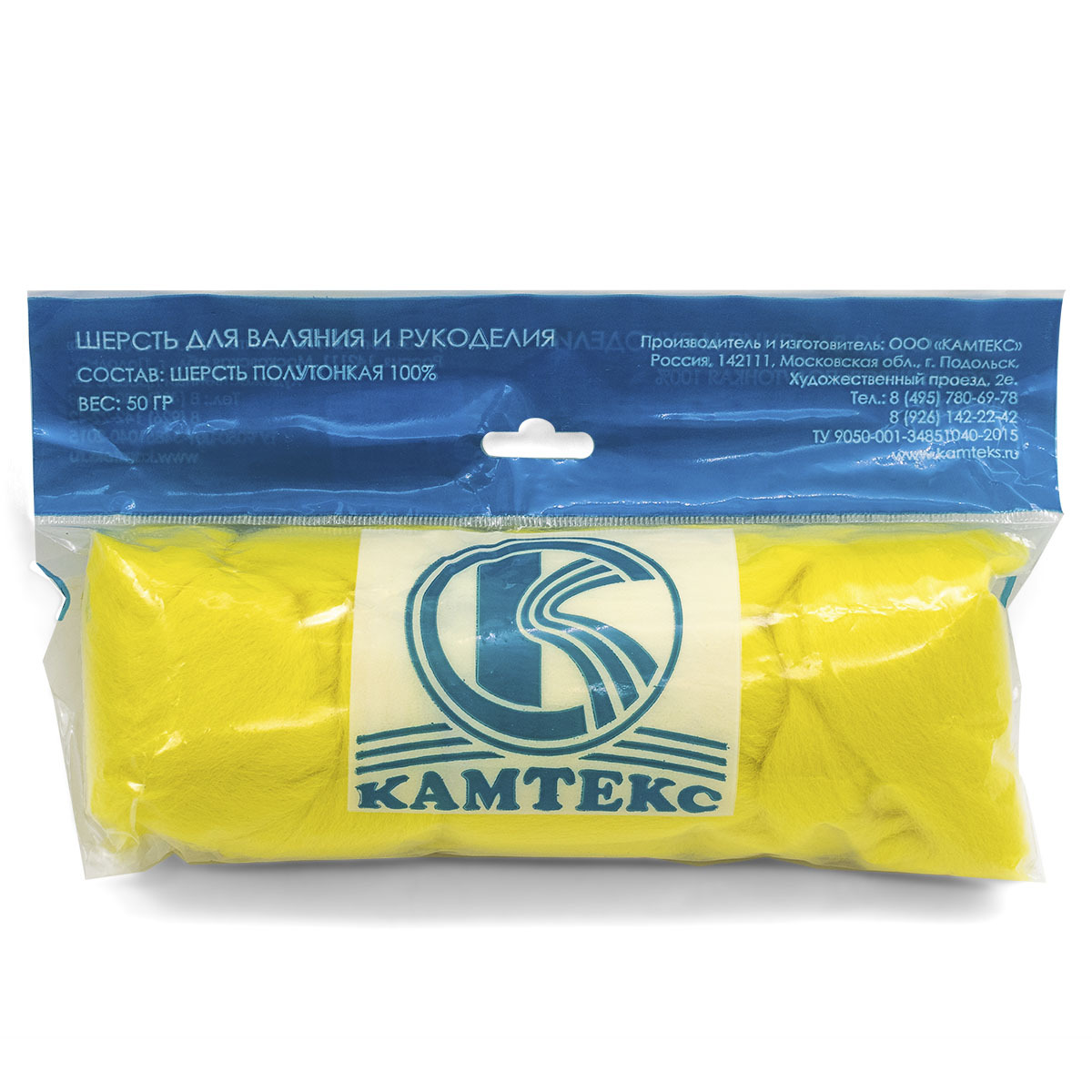 Шерсть для валяния Камтекс Лента для валяния п/тонкая 1х50 г, (25-28 мкр), 2.1 м, 029 яркий лимон