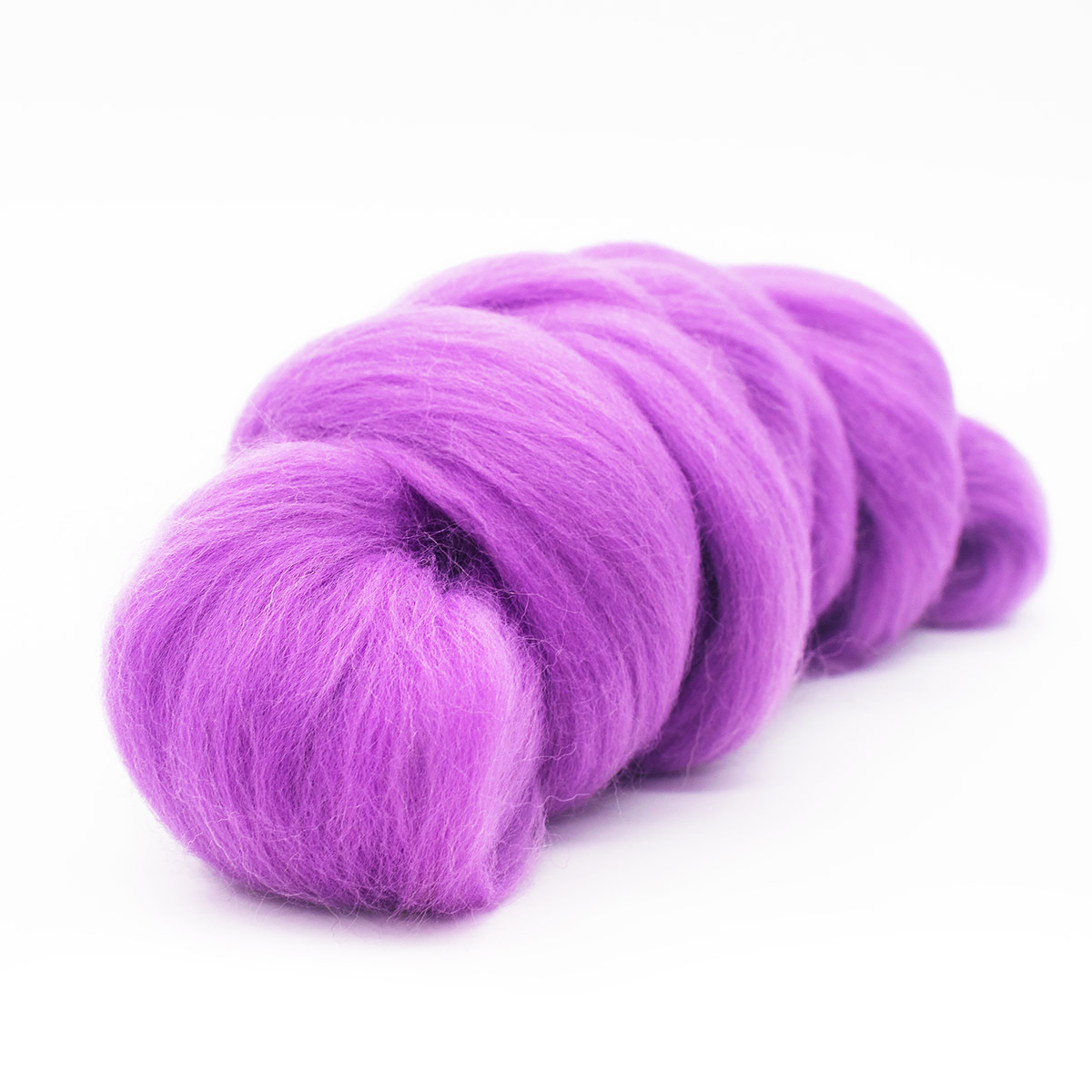 100% полутонкая шерсть в форме гребенной ленты. Мягкая, предназначена для мокрого и сухого валяния, а также живописи шерстью. Шерсть окрашенная, однотонная. На выбор предлагаются различные цвета. Только натуральная шерсть обладает способностью сваливаться, но при необходимости к ней добавляют вискозные или шелковые волокна. Эти материалы придают изделию легкий блеск и нежную фактуру. Дополнительно вам понадобятся иглы для фелтинга, поролоновый коврик, щетка, мыло для мокрого валяния. Количество в упаковке: 50 г.
