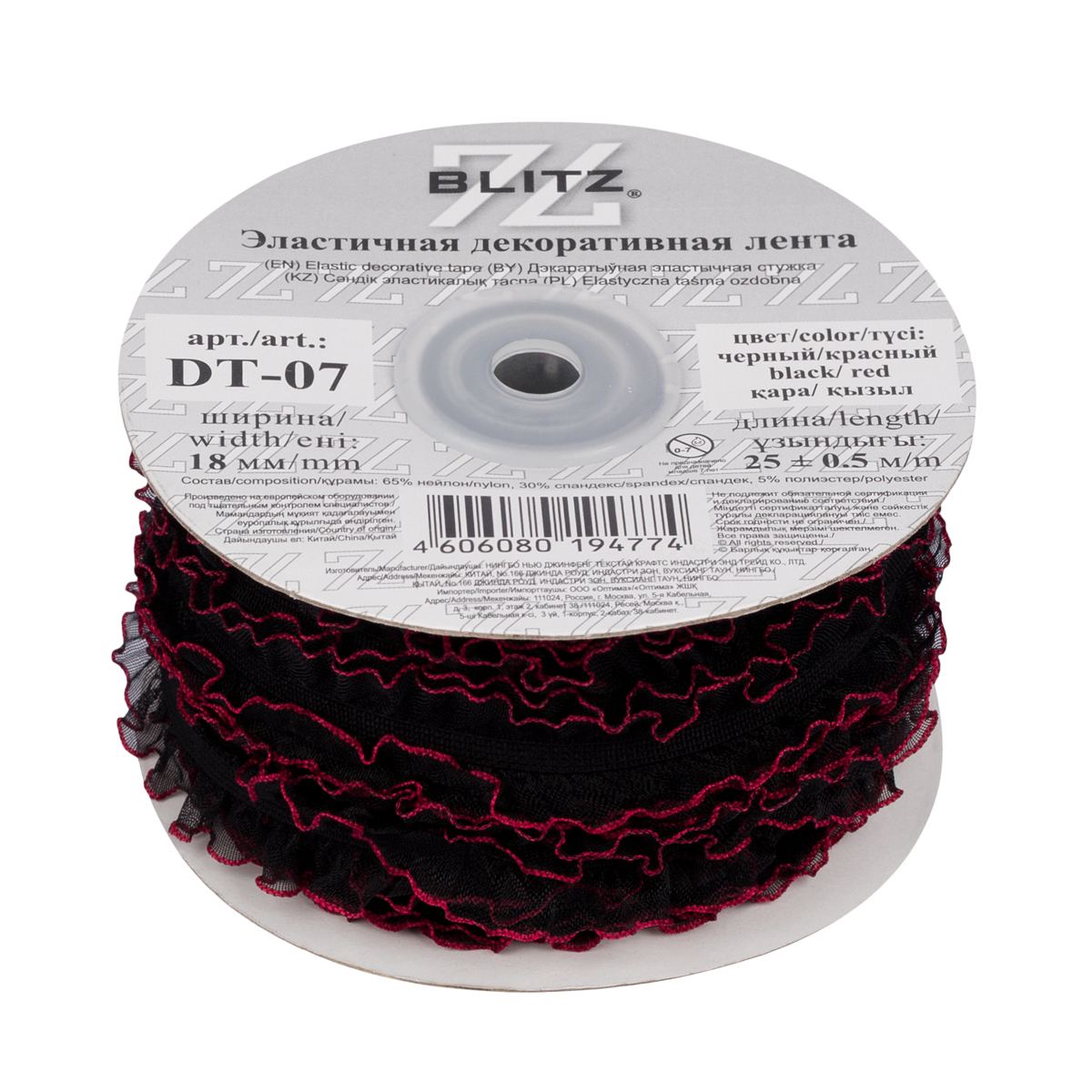 Резинка бельевая декоративная 18 мм / 25±0.5 метров, черный/красный, Blitz DT-07 /Распродажа/