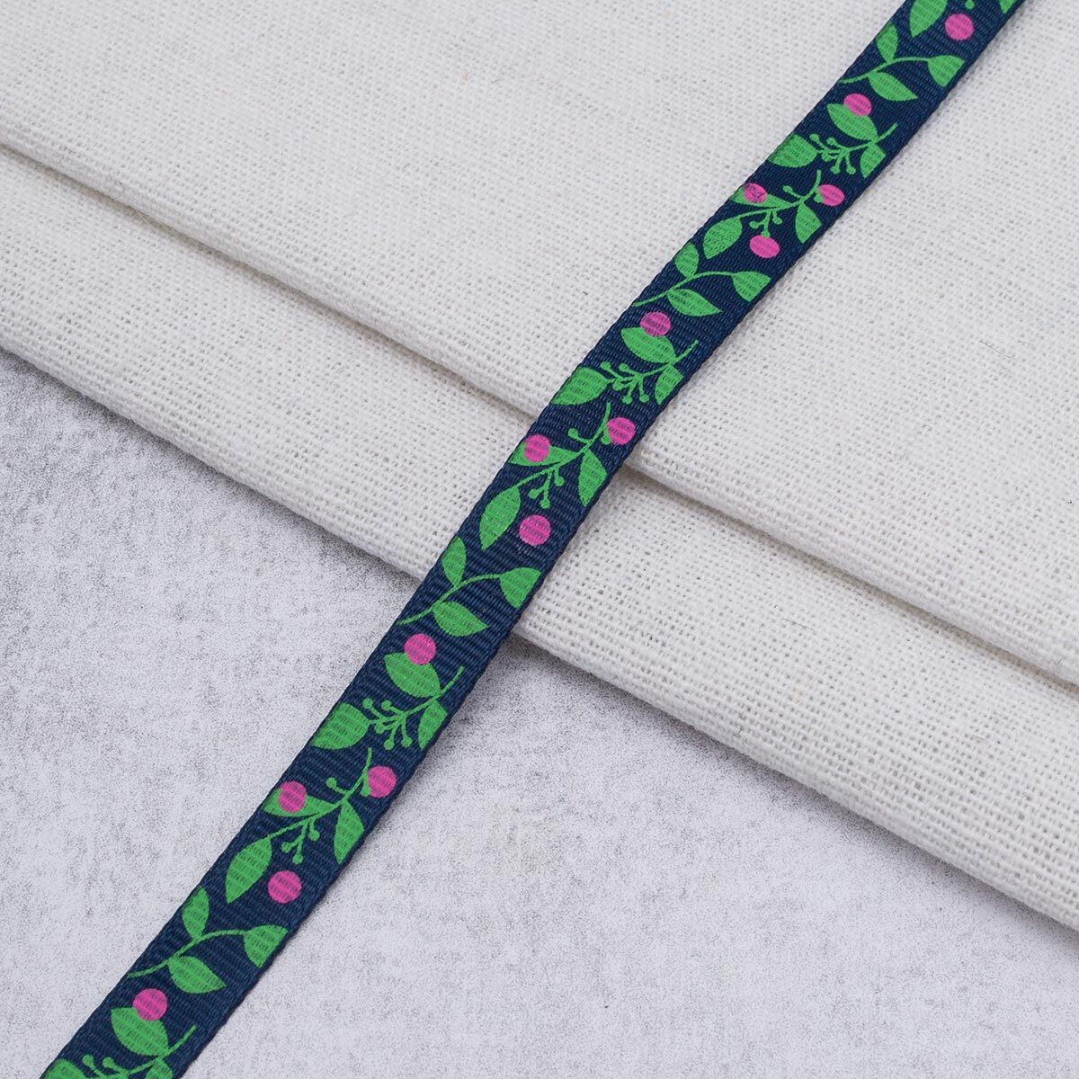 Лента репсовая (в рубчик) с рисунком 10.0 мм / 45.72 метра, ID 10110, цв. т. син, 24510