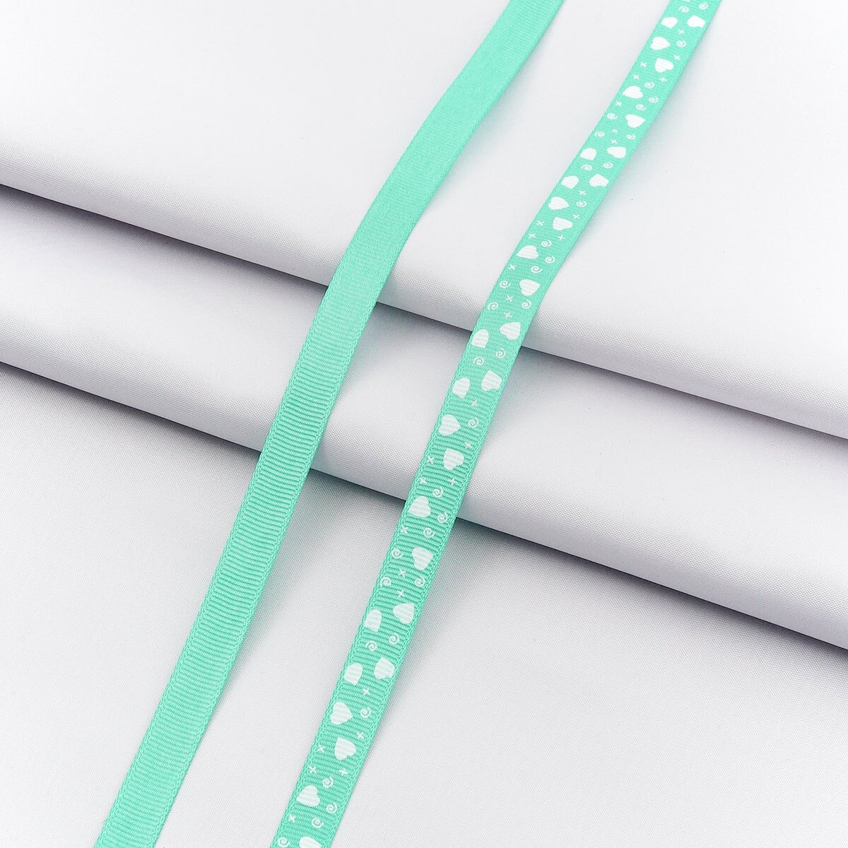 Лента репсовая (в рубчик) с рисунком 10.0 мм / 45.72 метра, ID 1075, цв.бирюз, 24476