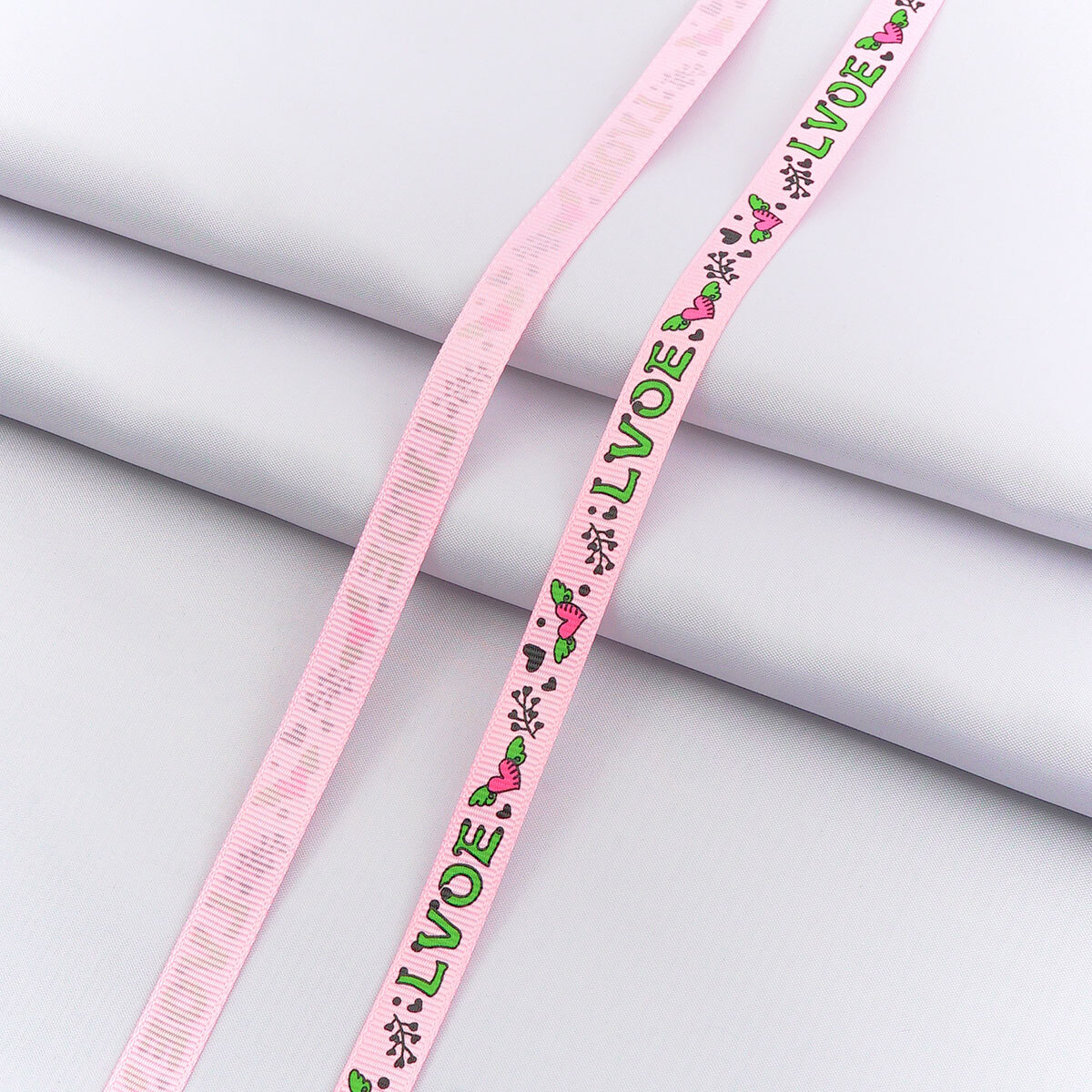 Лента репсовая (в рубчик) с рисунком 10.0 мм / 45.72 метра, ID 1084, цв. роз, 24485