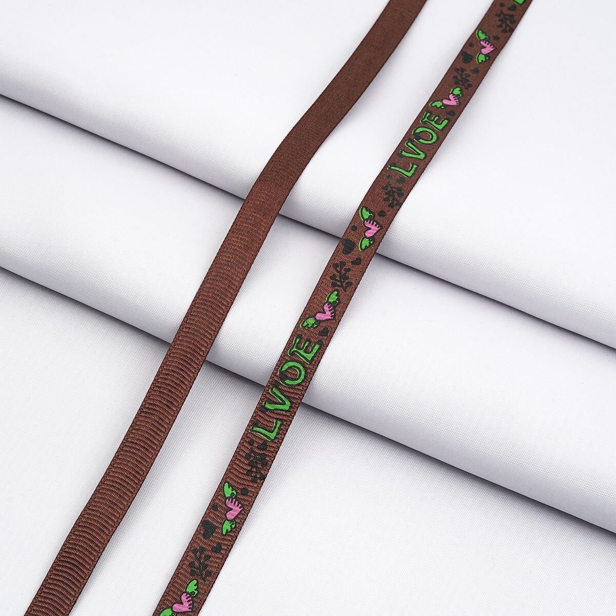 Лента репсовая (в рубчик) с рисунком 10.0 мм / 45.72 метра, ID 1086, цв.корич, 24487