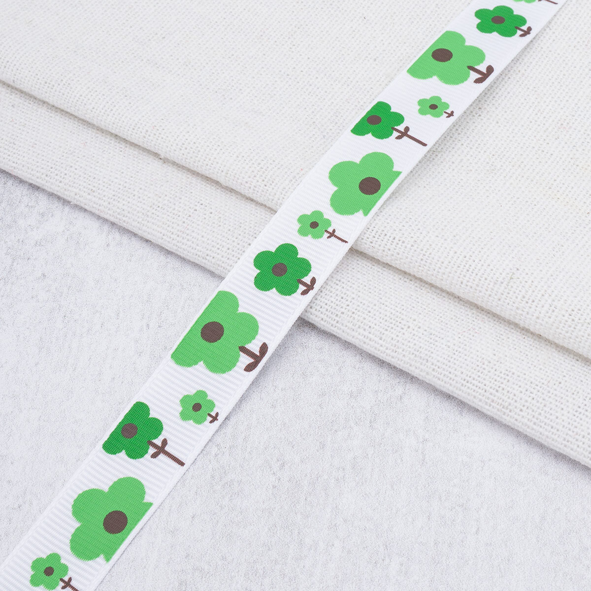 Лента репсовая (в рубчик) с рисунком 15.0 мм / 45.72 метра, ID 1557, цв. белый, 23289