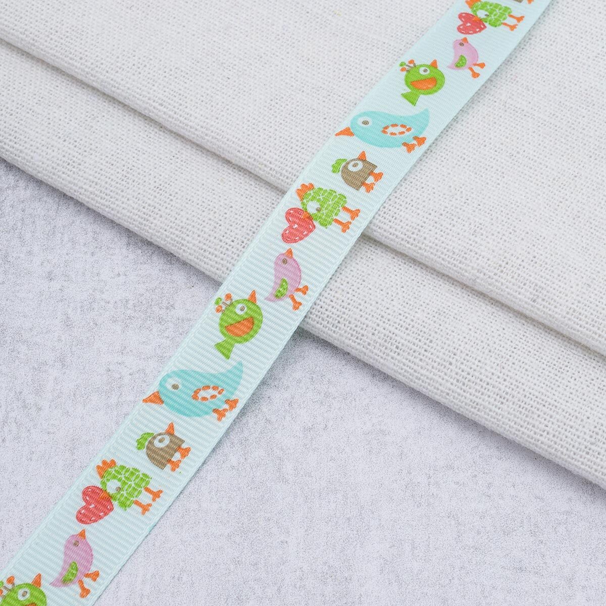 Лента репсовая (в рубчик) с рисунком 15.0 мм / 45.72 метра, ID 1567, цв. св. голубой, 23299
