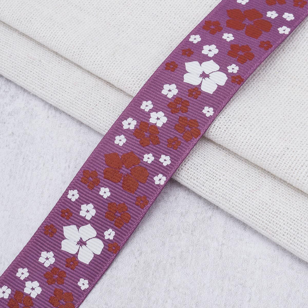 Лента репсовая (в рубчик) с рисунком 25.0 мм / 45.72 метра, ID 2541, цв. черничн., 25573
