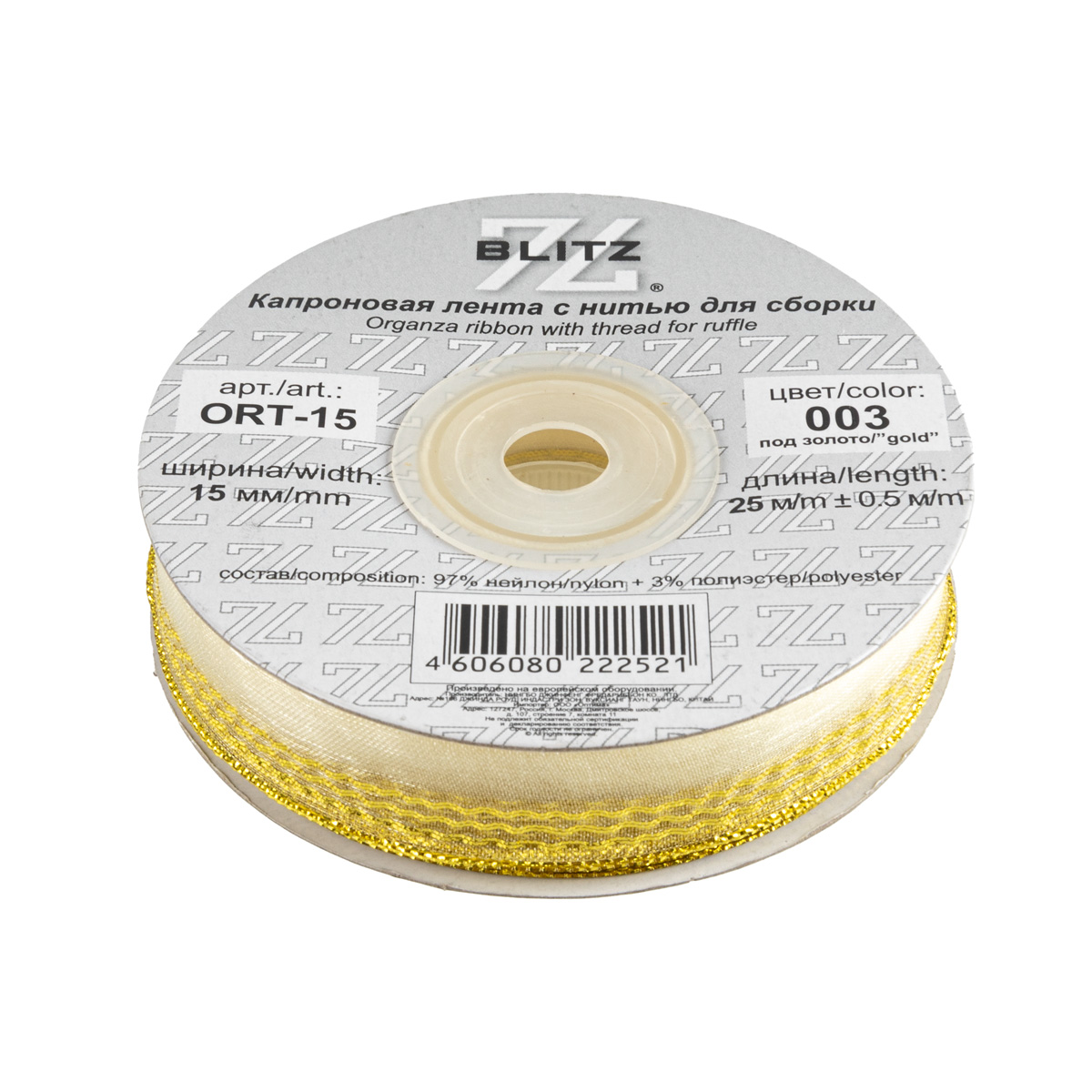 Лента капроновая (органза) 15.0 мм / 25 метров, 003 бл. кремовый/золото, Blitz ORT-15