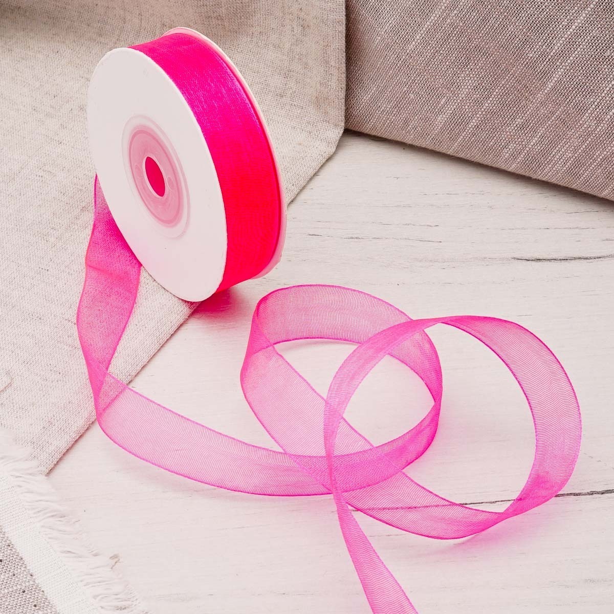 Лента капроновая (органза) 15.0 мм / 22.86±1 метров, 14 розовая фуксия