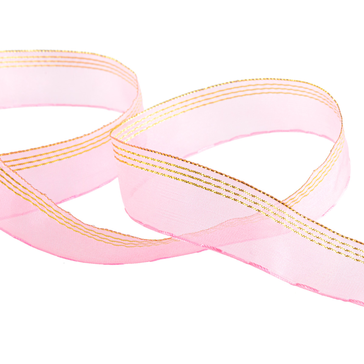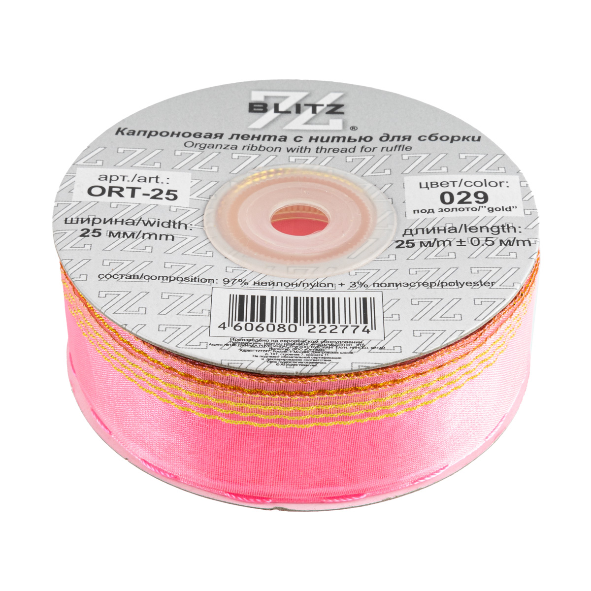 Лента капроновая (органза) 25.0 мм / 25 метров, 029 яр. розовый/золото, Blitz ORT-25