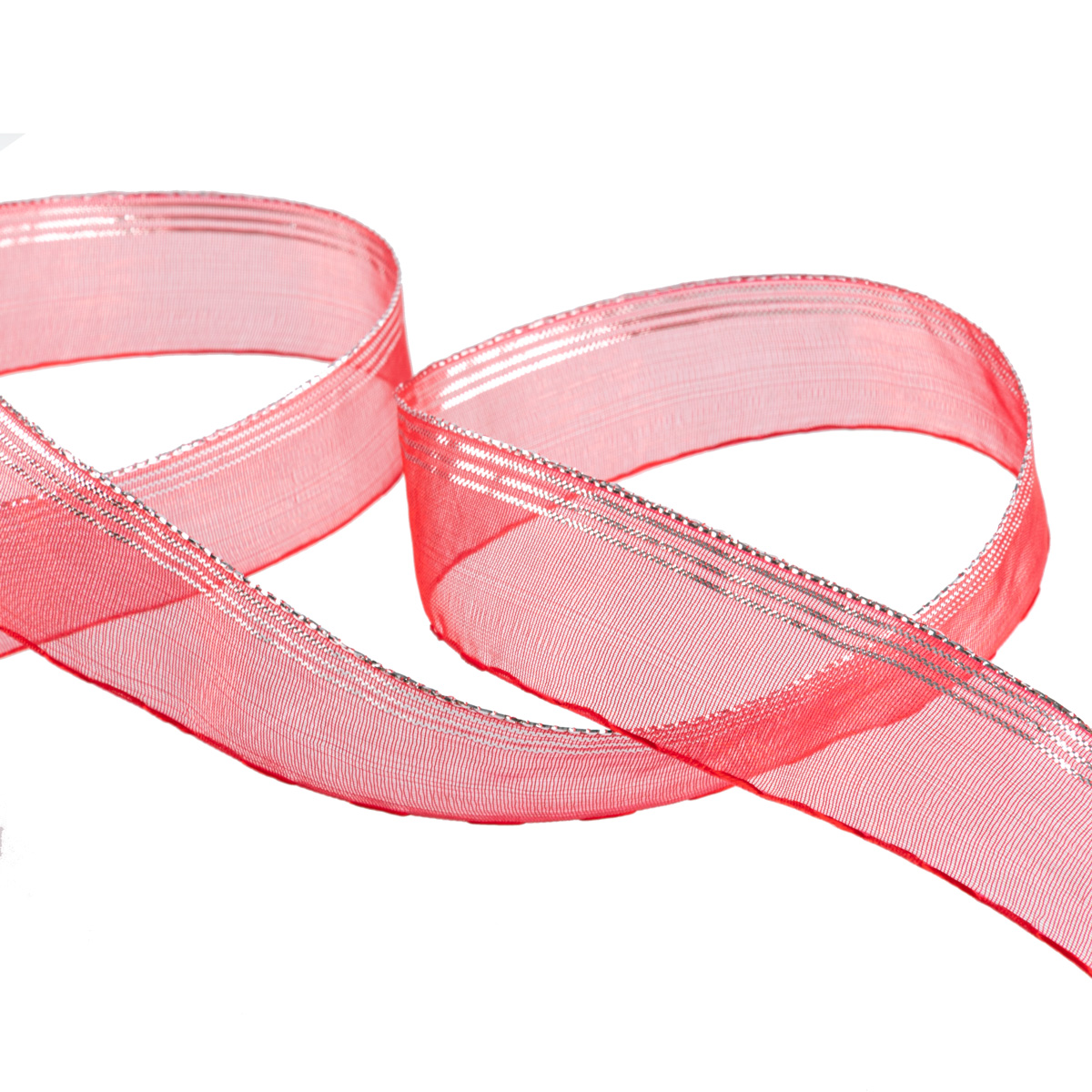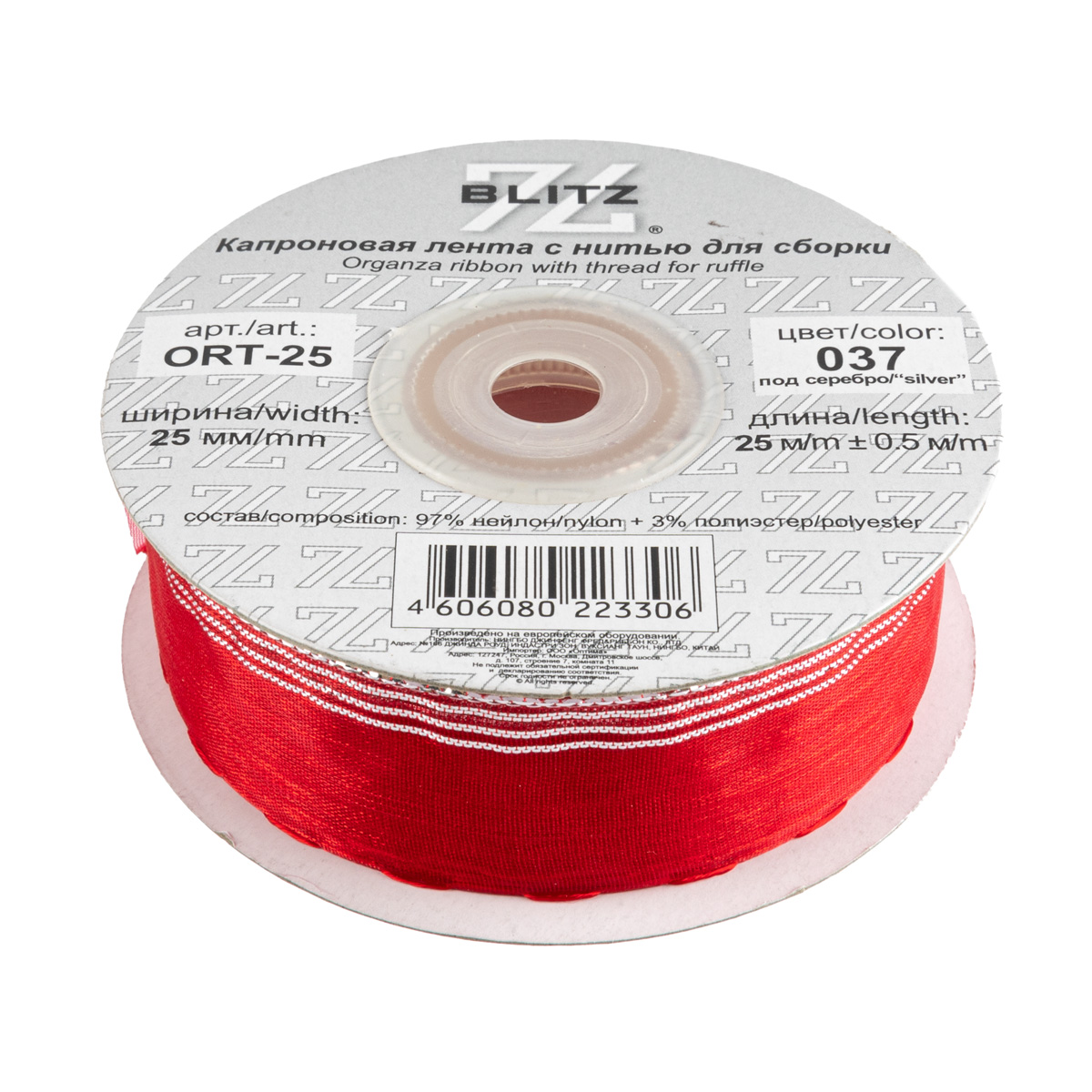 Лента капроновая (органза) 25.0 мм / 25 метров, 037 т.красный/серебро, Blitz ORT-25