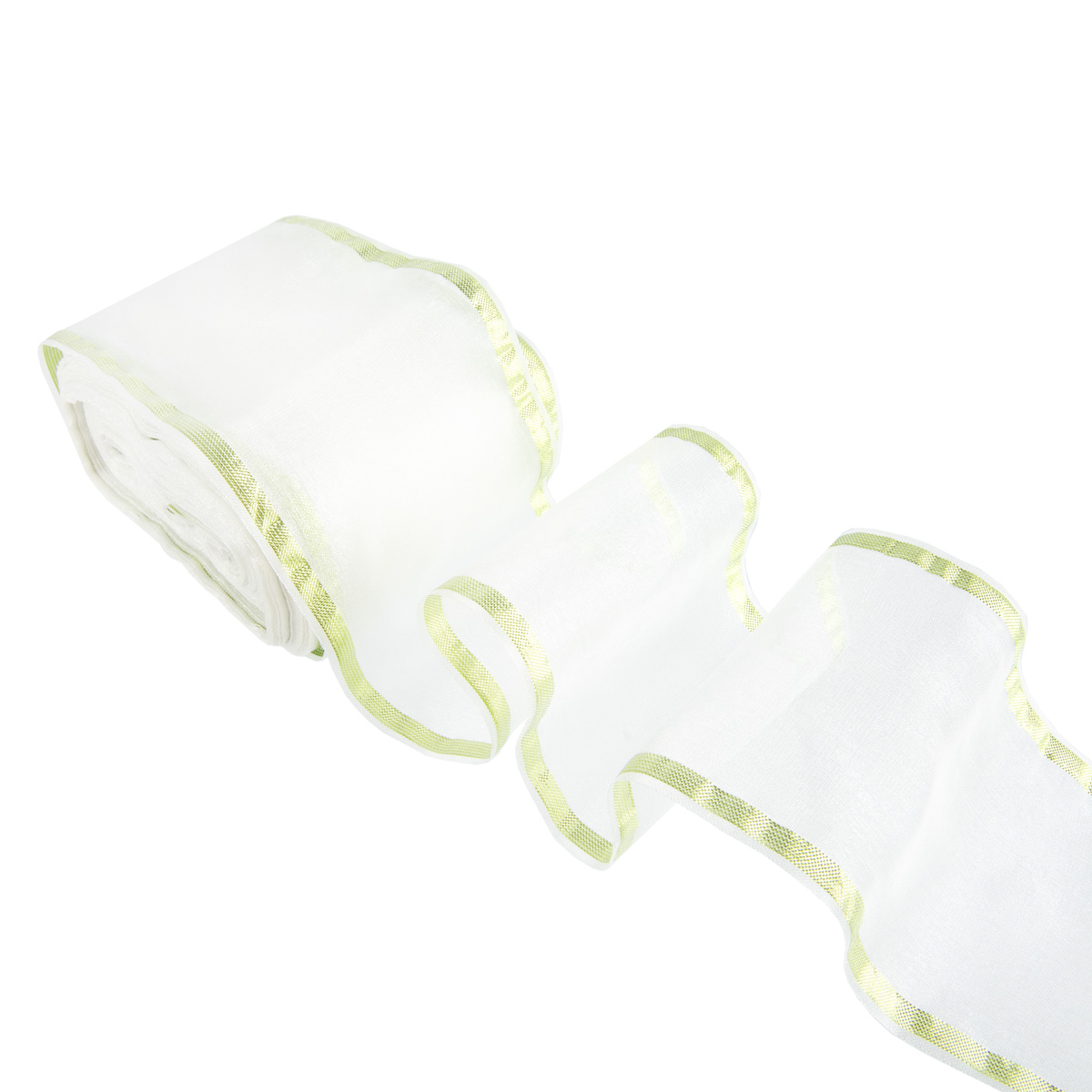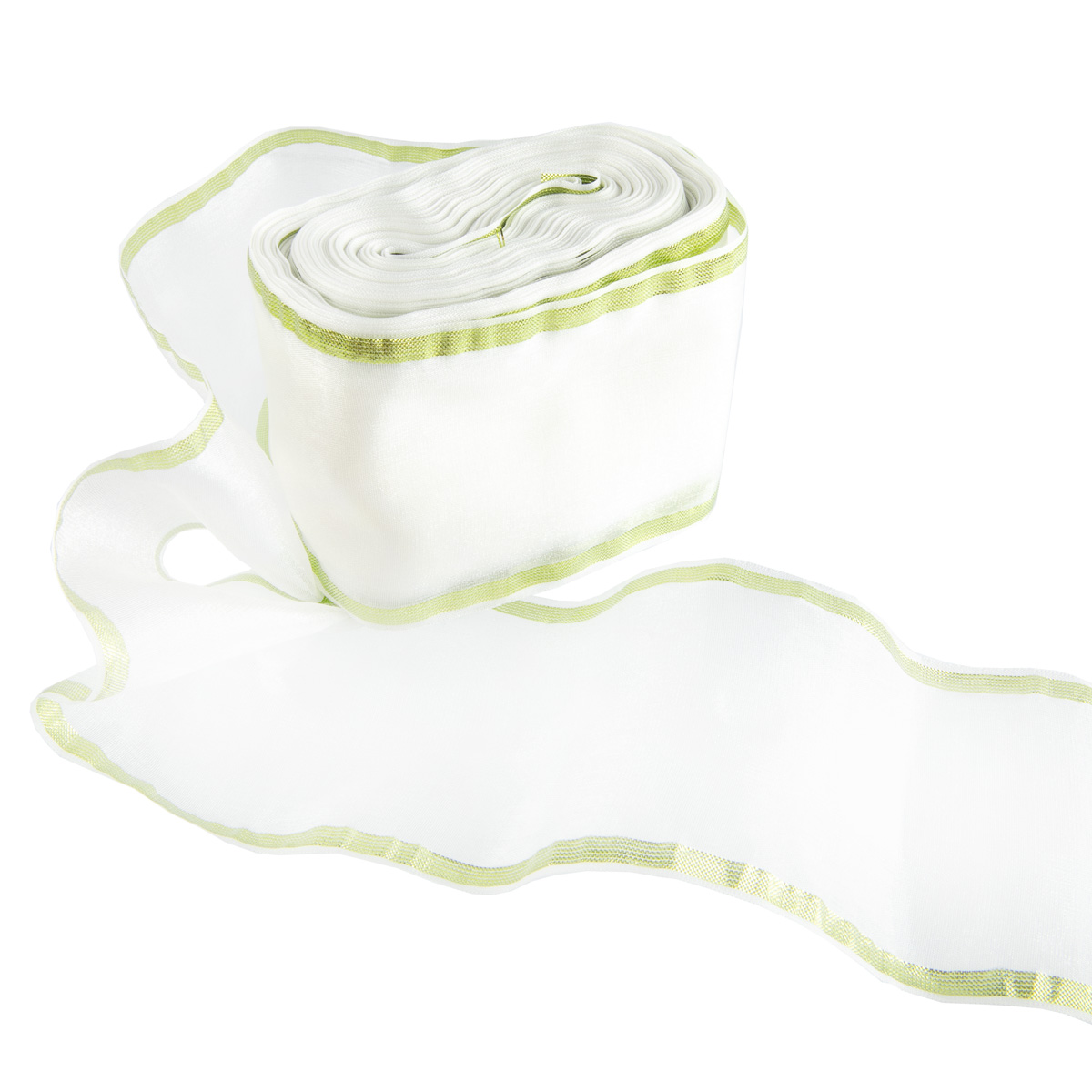 Лента капроновая для бантов 75 мм, / 25 метров, с метал. кромкой, белый/ салатовый, Gamma С 3502 с метал. кромкой