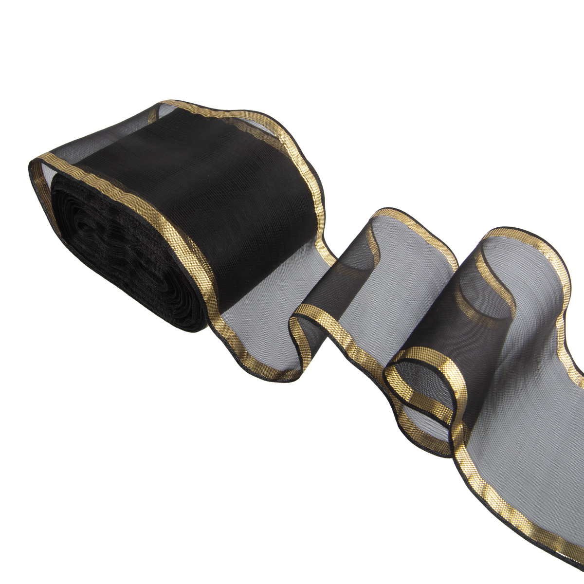 Лента капроновая для бантов 75 мм, / 25 метров, с метал. кромкой, черный/ под золото, Gamma С 3502 с метал. кромкой