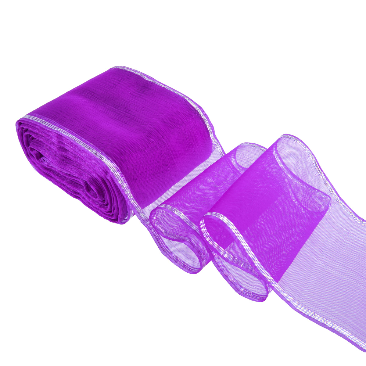 Лента капроновая для бантов 75 мм, / 25 метров, с метал. кромкой, фиолетовый/ под серебро, Gamma С 3502 с метал. кромкой
