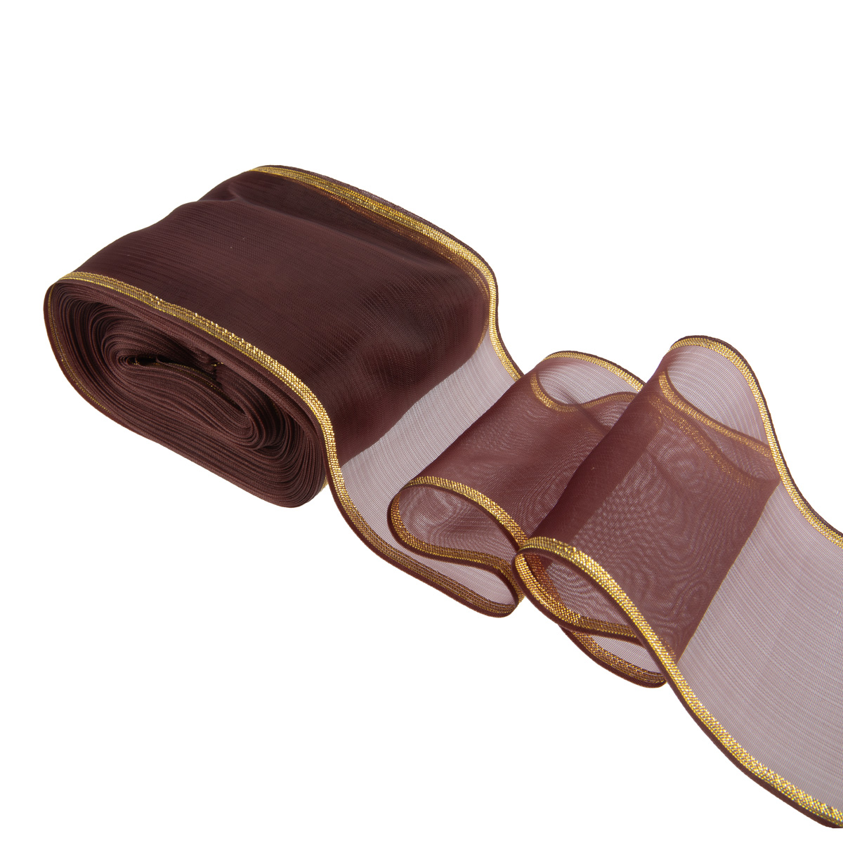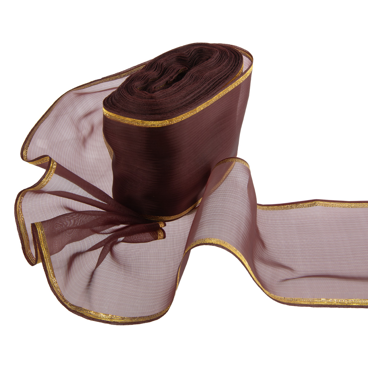 Лента капроновая для бантов 75 мм, / 25 метров, с метал. кромкой, коричневый/ под золото, Gamma С 3502 с метал. кромкой