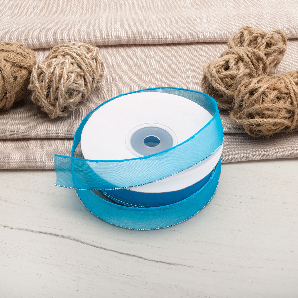 Лента капроновая (органза) для сборки бантов с метанитью 20 мм, 25м HRPL-1011S (HO-034 бирюзовый)