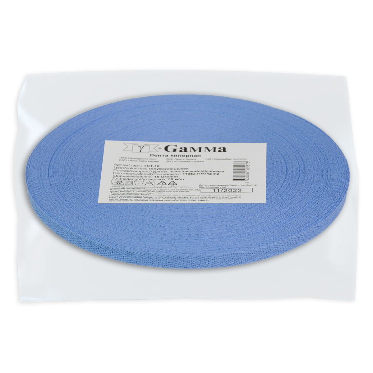 Тесьма (лента) киперная (100% х/б) 10 мм / 50 метров, голубой/blue, Gamma TCT-10