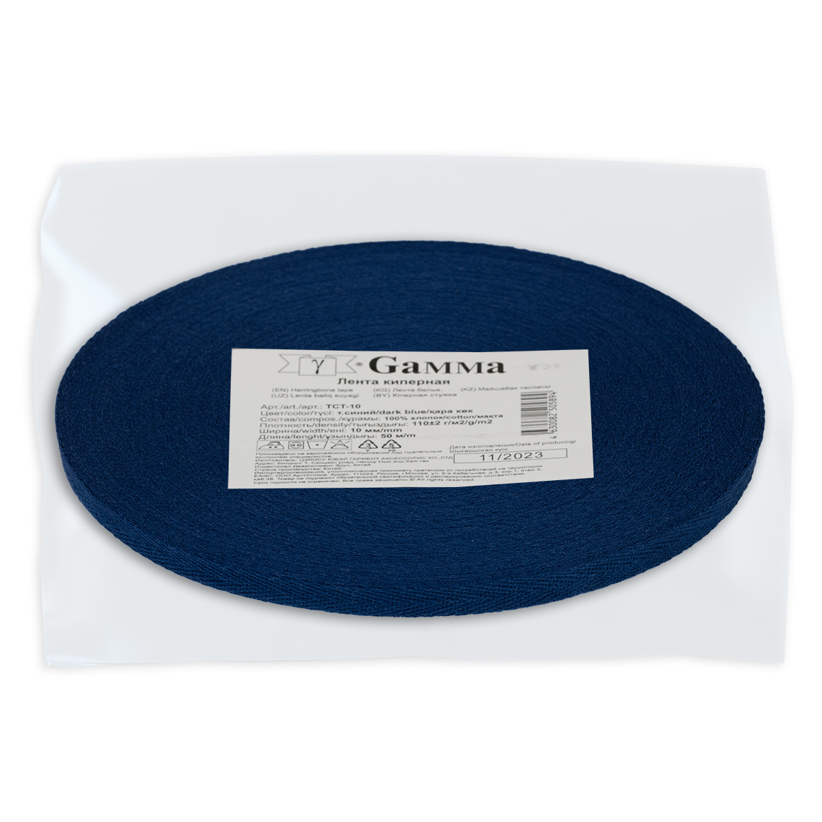 Тесьма (лента) киперная (100% х/б) 10 мм / 50 метров, т.синий/dark blue, Gamma TCT-10