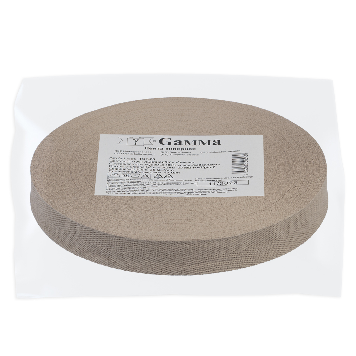 Киперная лента ТМ Gamma - плотная лента диагонального переплетения, состоящая из натуральных хлопковых волокон.