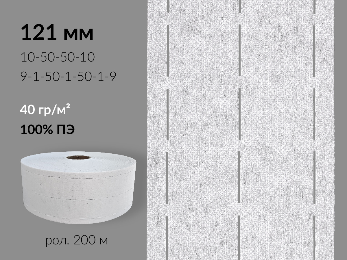 Лента корсажная клеевая перфорированная 121.0 мм / 200 метров, 40 г/м², цв. белый, 20140 9/1/50/1/50/1/9, БрючникоФФ