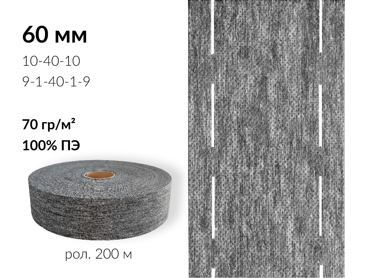 Лента корсажная клеевая перфорированная 60.0 мм / 200 метров, 70 г/м², цв. серый, 20170 9/1/40/1/9, БрючникоФФ