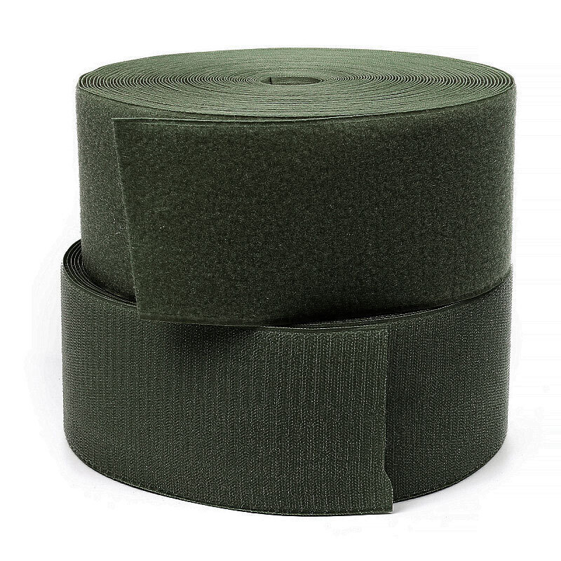 Лента контактная липучка (велкро) пришивная уп. 100 мм / 25 метров, F327 хаки, ПАРА (крючок+петля), качество "B"