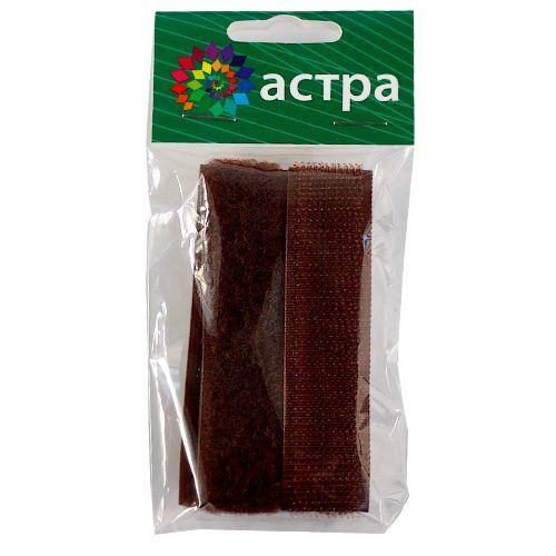 Лента контактная липучка (велкро) пришивная фасовка 20 мм / 25 см, 007 коричневый, /пара/, Астра, кач."B" /TOS/