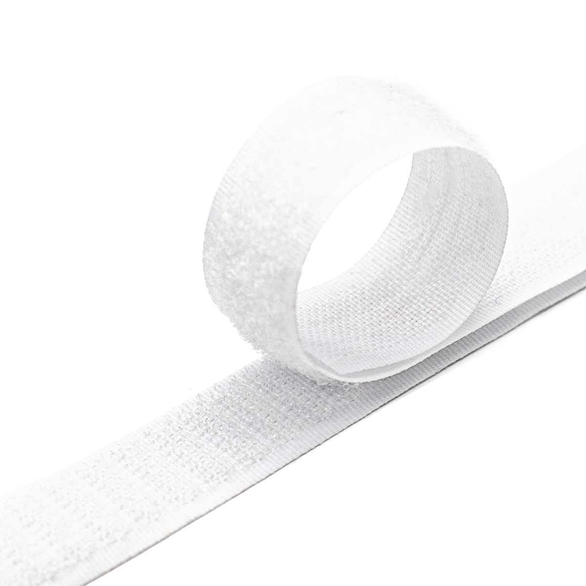 Лента контактная липучка (велкро) пришивная 20 мм / 25 метров, белый, ПАРА (крючок+петля), качество "C"