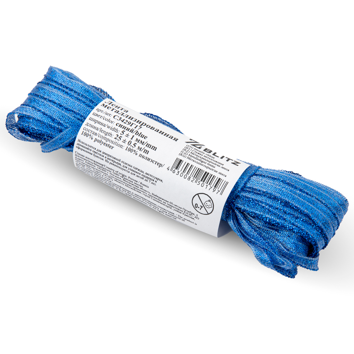 Лента металлизированная 5.0 мм / 25±1 метров, синий, Blitz С3429Г17