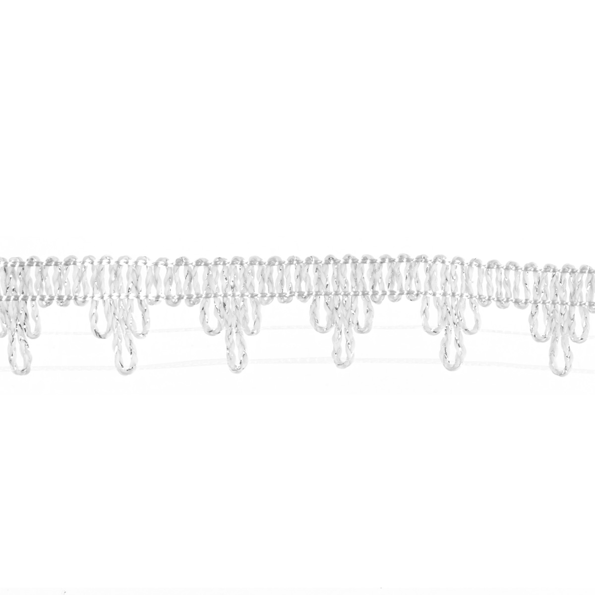 Лента металлизированная выполнена в виде отделочной тесьмы с треугольными кистями. Применяется в отделки театральных, новогодних костюмов, в изготовлении новогодних шаров, обновлении домашней утвари.