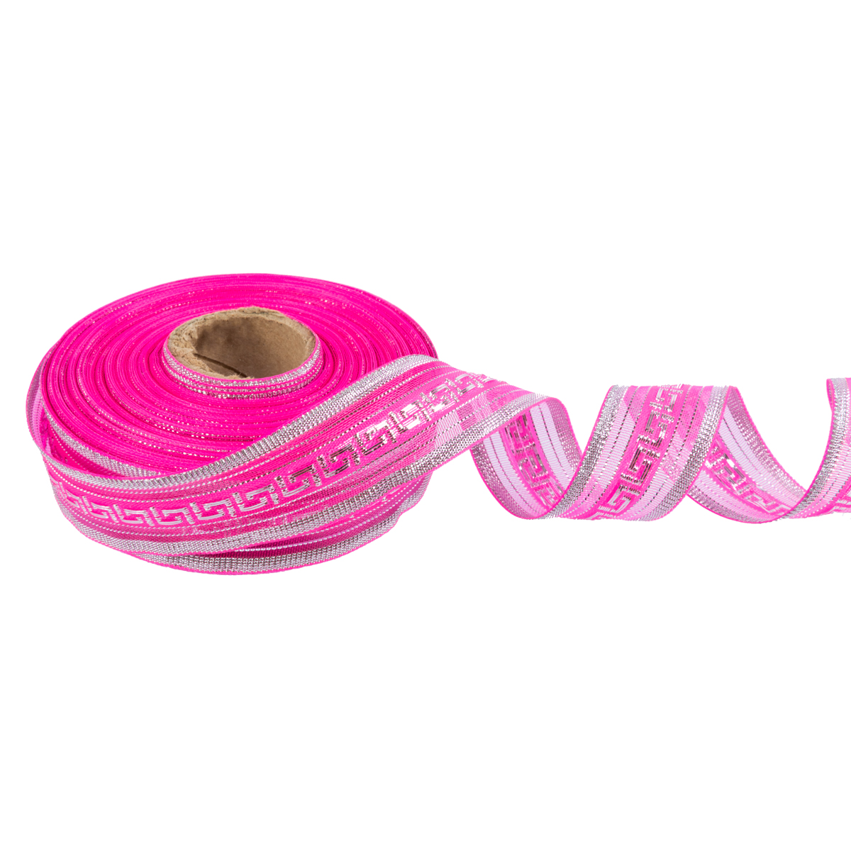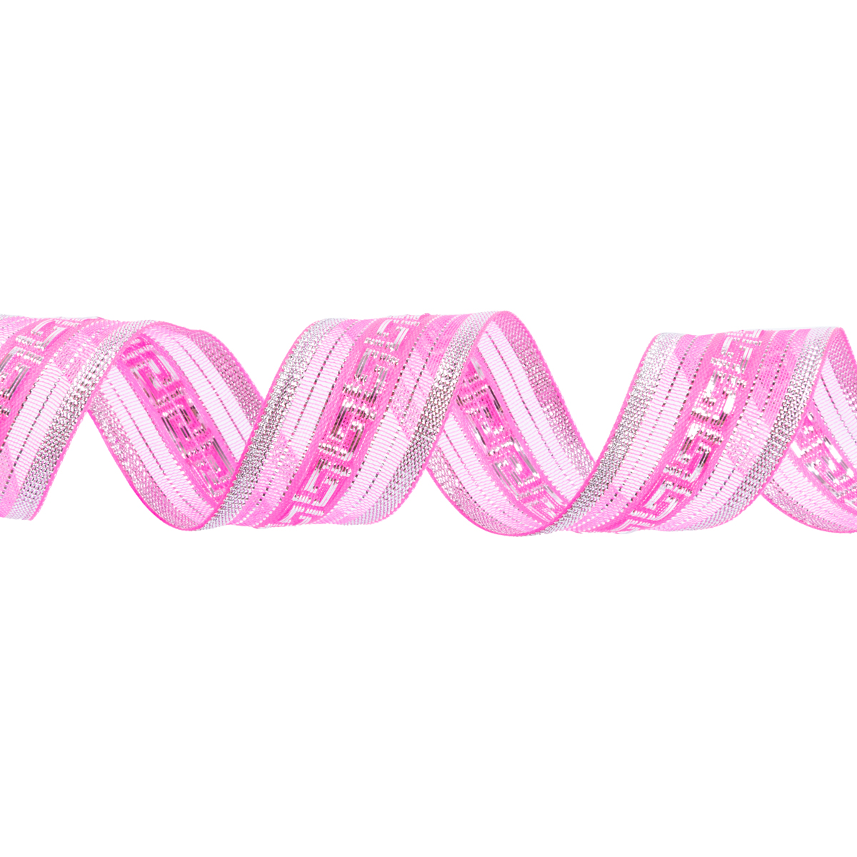 Лента металлизированная Подарочная 25±2 мм / 25±0.5 метров, яр.розовый- под серебро, Blitz