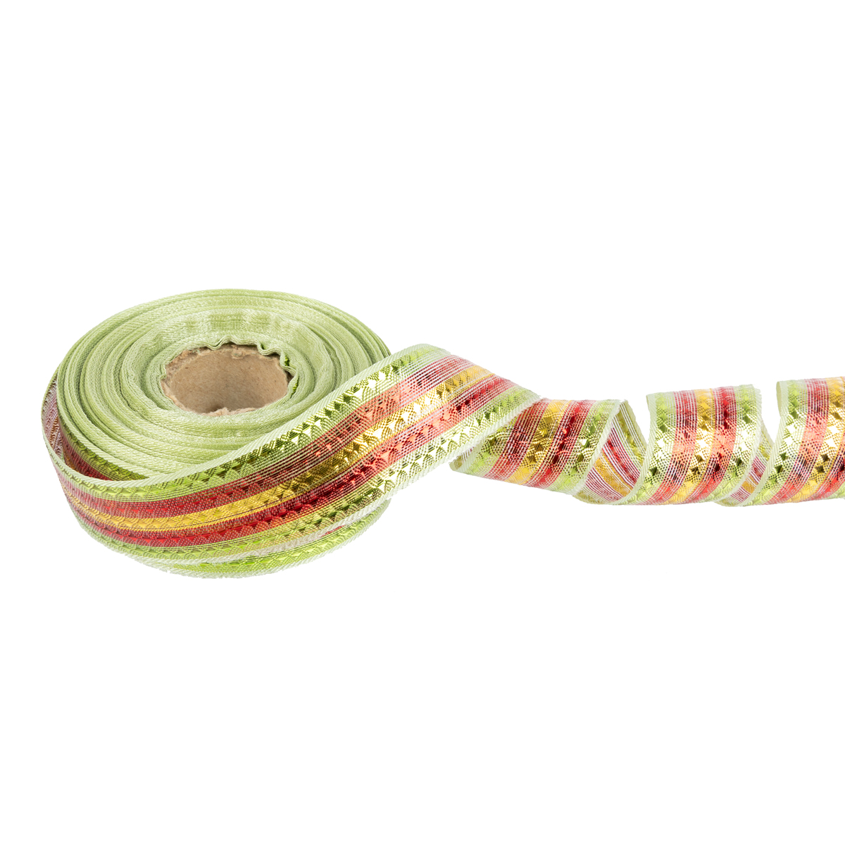 Лента металлизированная Стрела 25±2 мм / 25±0.5 метров, под золото-красный-салатовый / gold-red-lt.green, Blitz