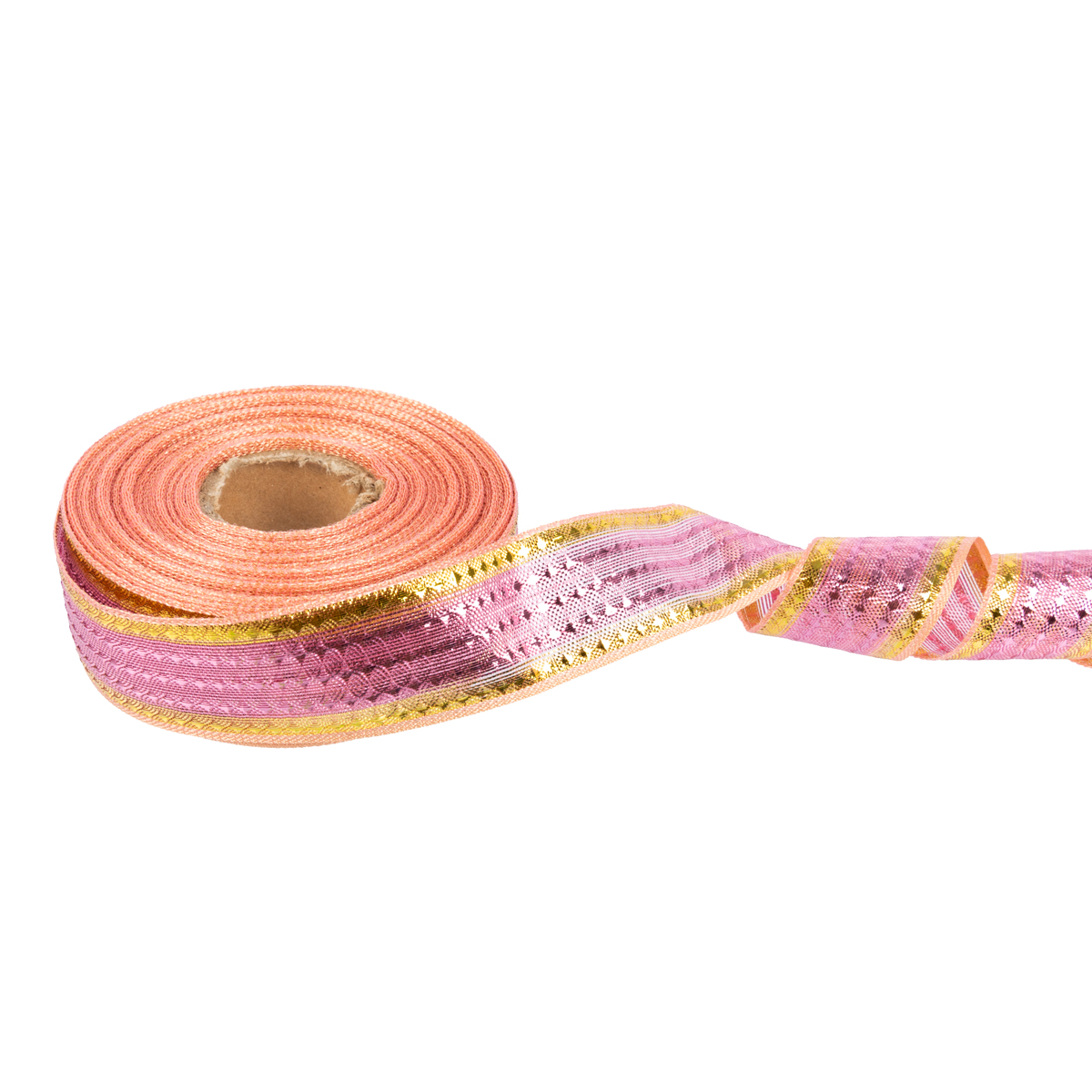 Лента металлизированная Стрела 25±2 мм / 25±0.5 метров, розовый-под золото / pink-gold, Blitz