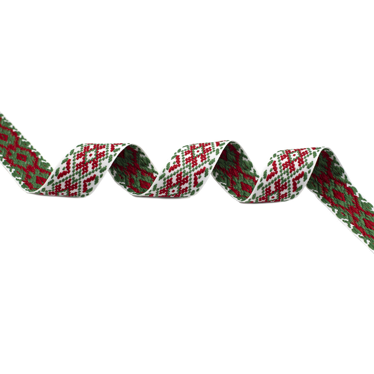 Лента (тесьма) жаккардовая 37.0 мм / 50 метров, (268 бел, красн., зел.), Р9723