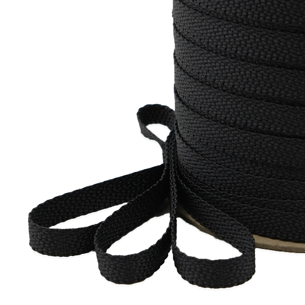 Стропа (ременная лента) 10 мм / 100 метров, толщ. 0.5 мм, [6 г/пог.м], 100% п/э, 005 черный