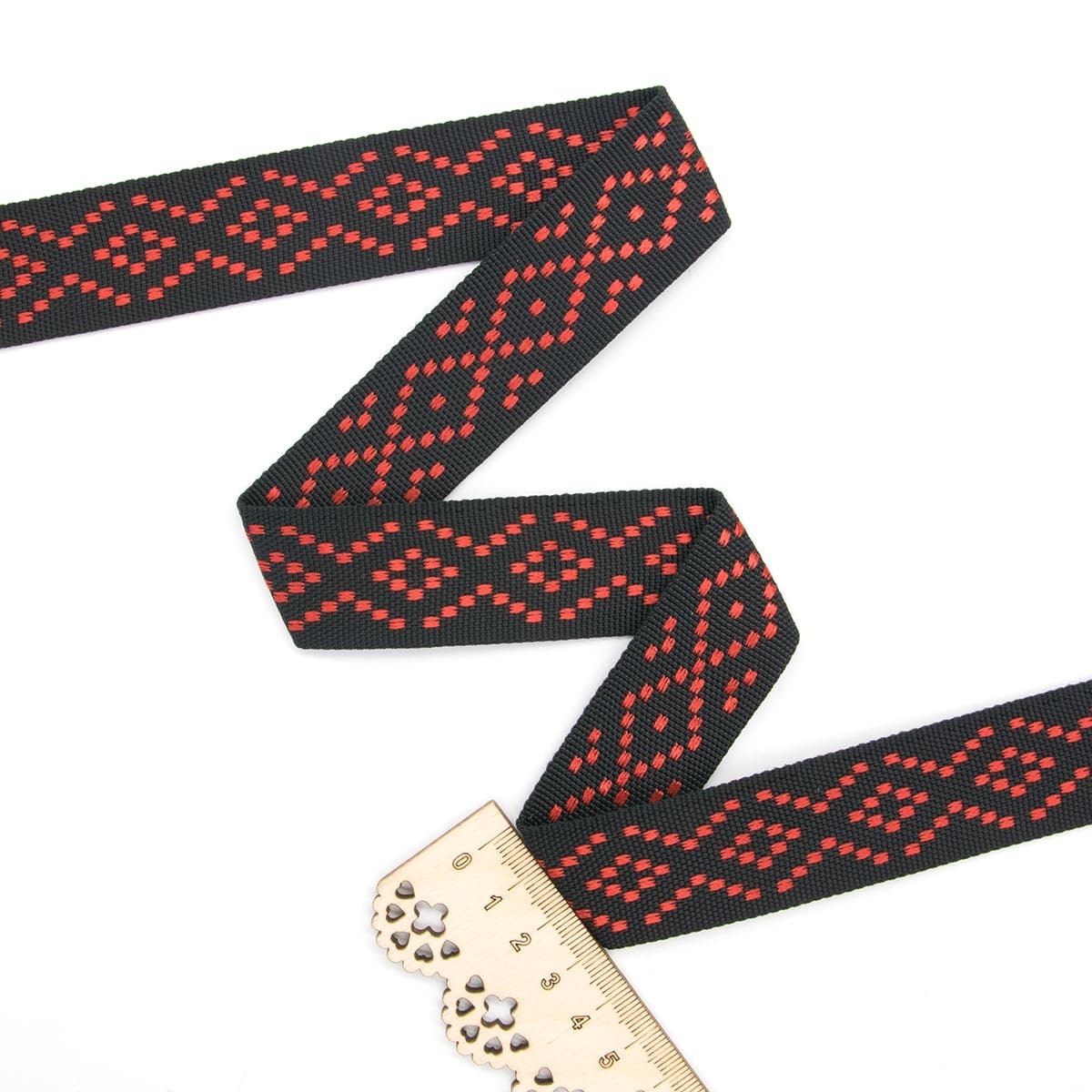 Стропа (ременная лента) 30 мм / 25 метров, [24.6 г/пог.м], 100% п/э, 35 черный с красным